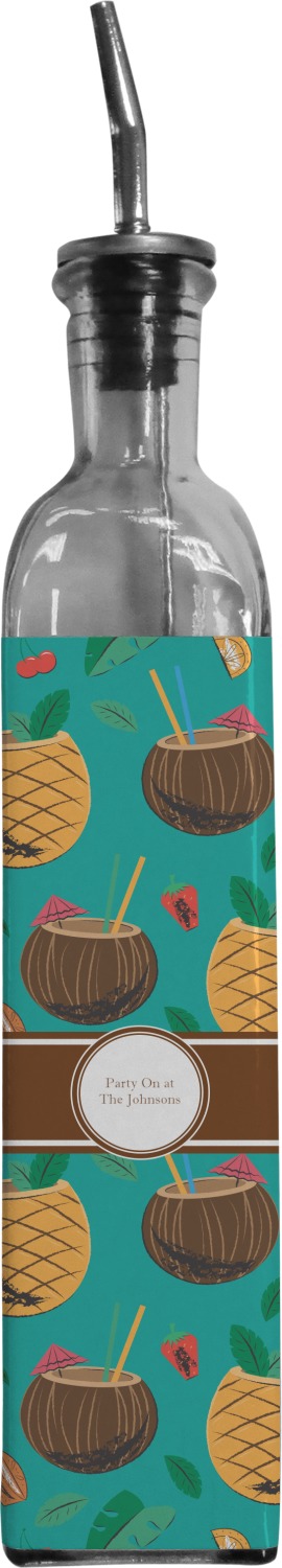 Made from recycled glass in Spain, these oil bottles have a classic, delicate look, and are accompanied by a metal spout for controlled pouring. Each bottle holds approximately 13 ounces and measures at 12 by 2 inches. We customize your glass oil bottle by applying your personalized design on the front and sides, using an adhesive. Our customizable stickers are made from high quality, gloss vinyl and are printed with waterproof, eco-solvent inks. These pieces are machine cut for accuracy and symmetry. The result is a robust, waterproof, adhesive decal that will not fade or deteriorate with time.