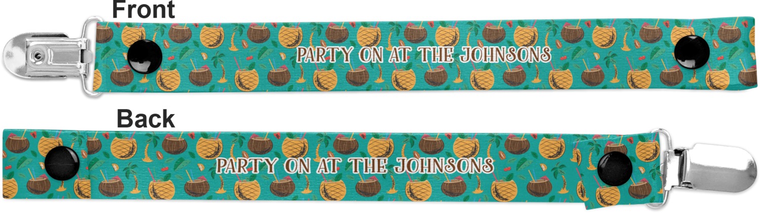 This personalized pacifier clip is the ideal size and measures at approximately 7.5 inches in length, when either end is snapped closed. On one end, you'll find a snap button. This button of your baby's pacifier holder is what can be attached to their pacifier to hold is securely in place. Simply open the snap, slip it through the pacifier opening, and snap it back into place. On the opposite end of this baby pacifier holder, you'll find a metal clip that can secure to a baby's collar or sleeve. This clip ensures that the strap stays in place, and that your baby's pacifier is always on hand.