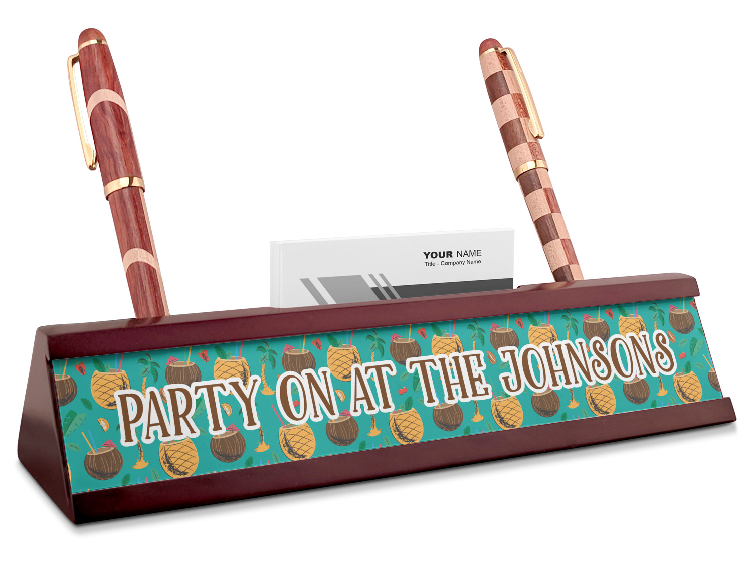 Palm Trees Designs for Red Mahogany Nameplates with Business Card Holder