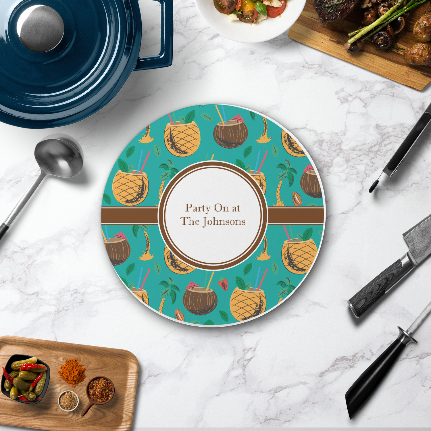 The round trivets can be customized with your own design, your own photo, or your own logo. You can add personalization, like a monogram, family name or initial to your uploaded design / art. You can also customize one of our designs and change the patterns, colors, personalization, fonts etc.