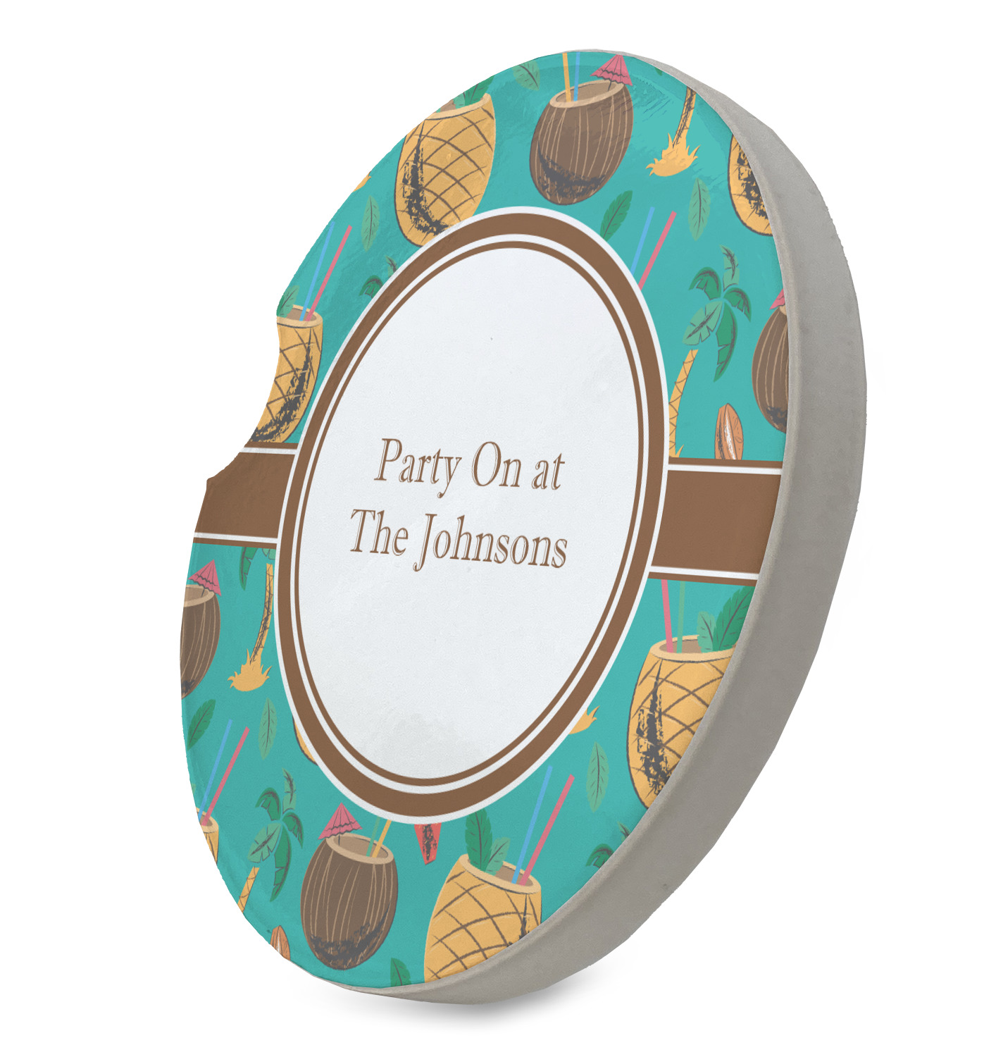 These sandstone coasters are round, robust, and feature a smoothed glossy side to exhibit your customized design. With a 2.5 inch diameter, these stone coasters will fit snugly inside most cup holders. This model also features a semi-circle shaped divot that allows for easy removal, despite the tight fit. You can purchase these car cup holder coasters in a pair, or singularly, depending on your needs.