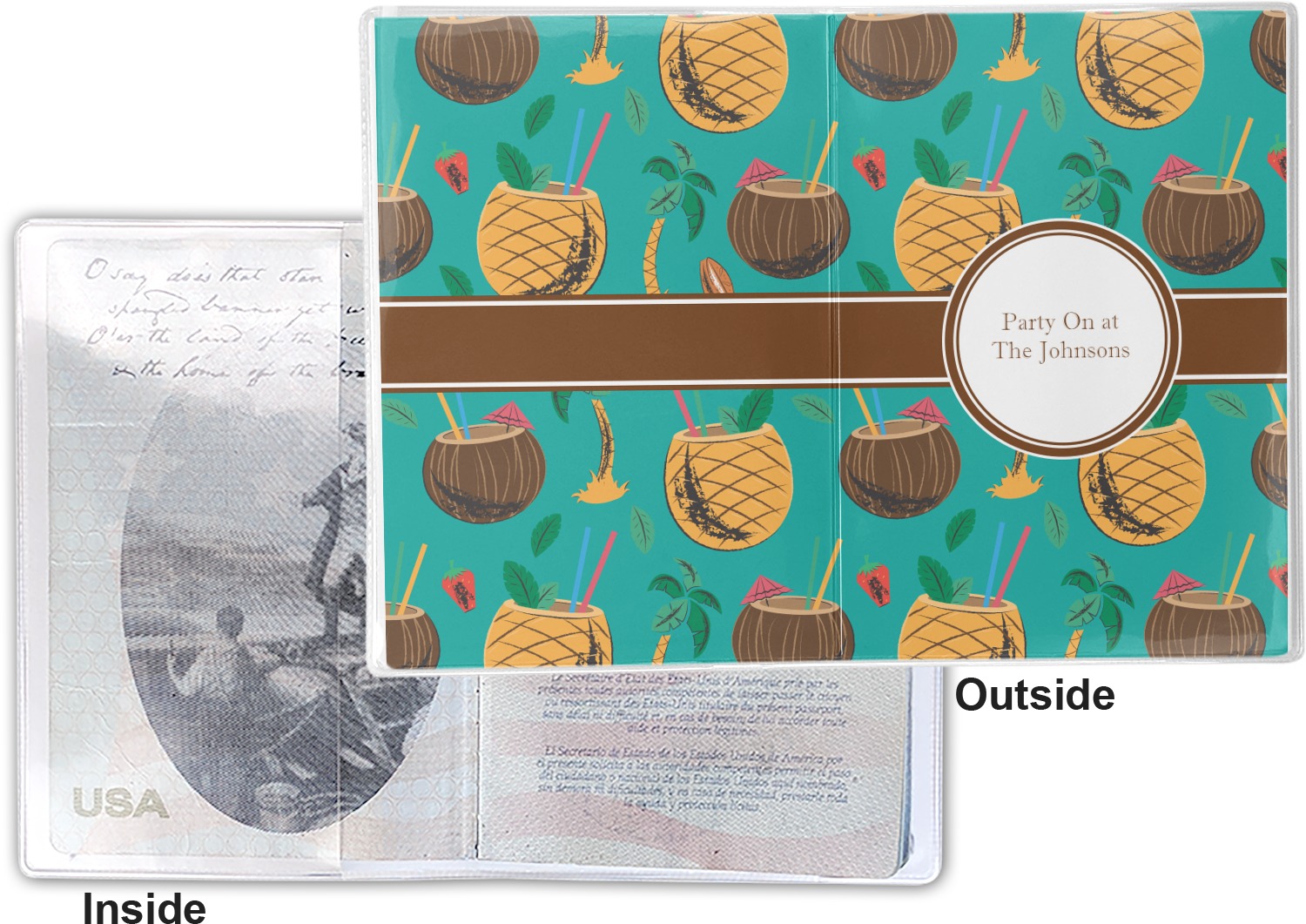 This cover is made of a sturdy clear vinyl with a personalized vinyl insert inside. There is a large and a small pocket on either side to hold the covers of your passport easily and firmly. The passport holder is approximately 7.5" x 5.25", the perfect size to snugly fit your passport. This slim cover is the perfect way to protect your passport without being one more bulky item you have to carry.