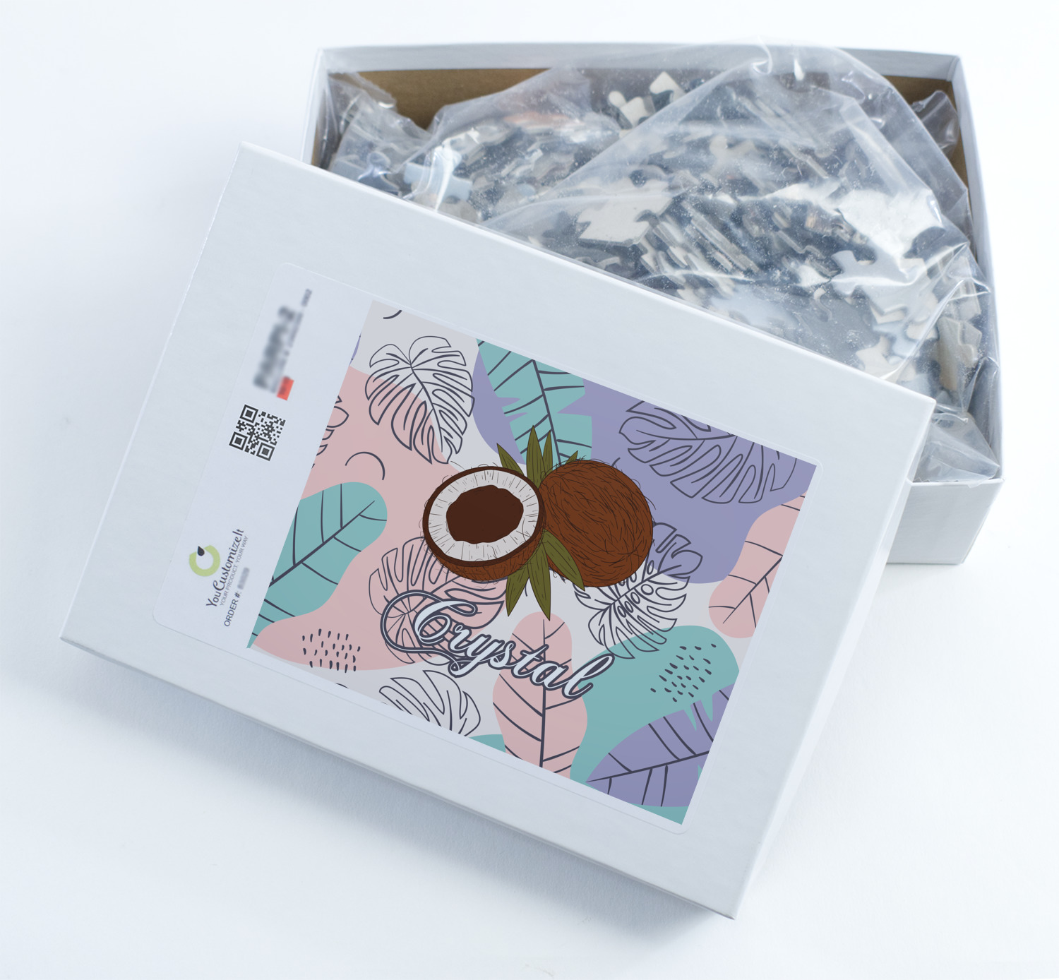 You can also upload your logo or art that you or your kids drew. To create more challenging jigsaw puzzles, you can create a pattern from with your logo or artwork. You can also add other elements such as text or personalization.