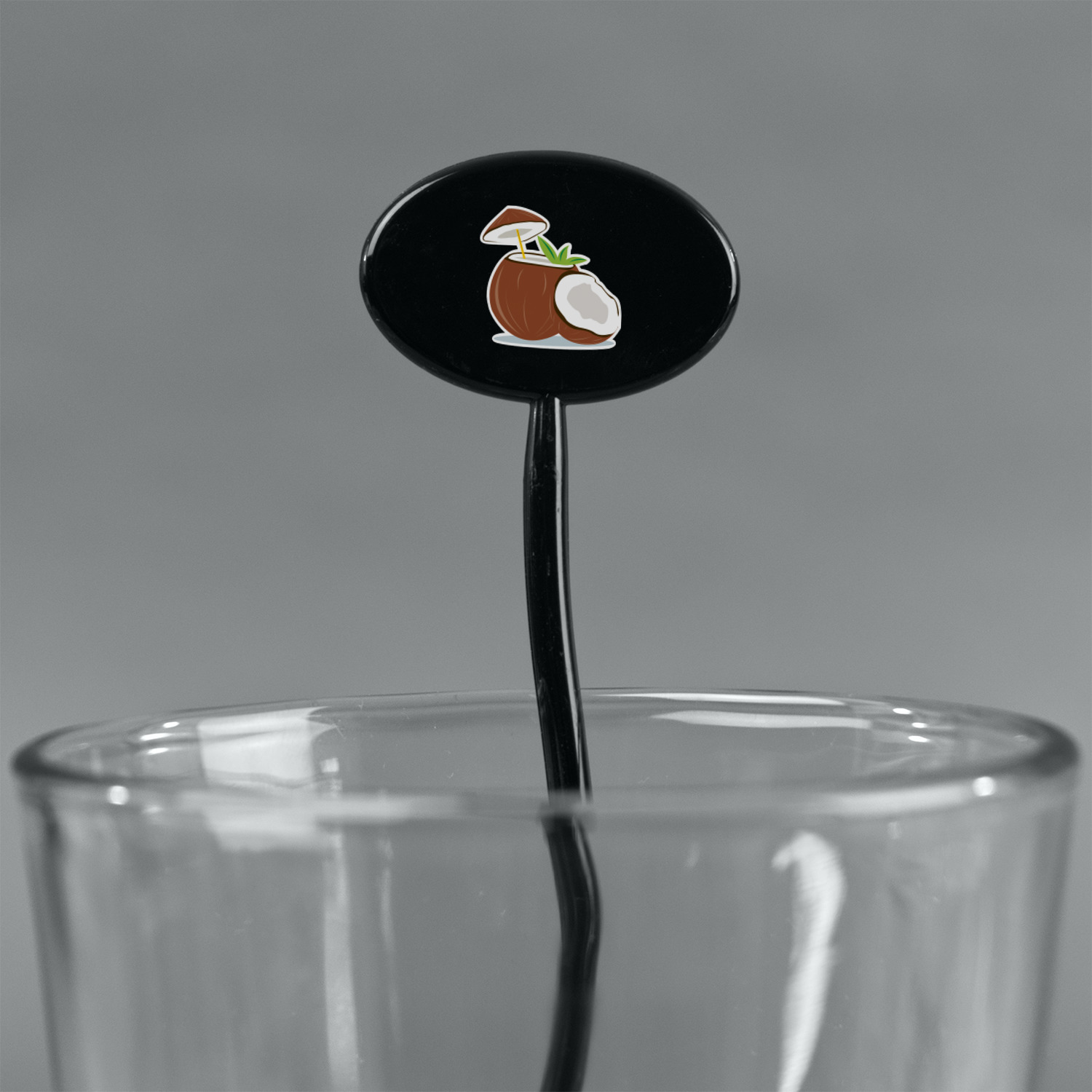 Coastal / Beach Style Designs for 7" Oval Plastic Stir Sticks - Black - Single-Sided