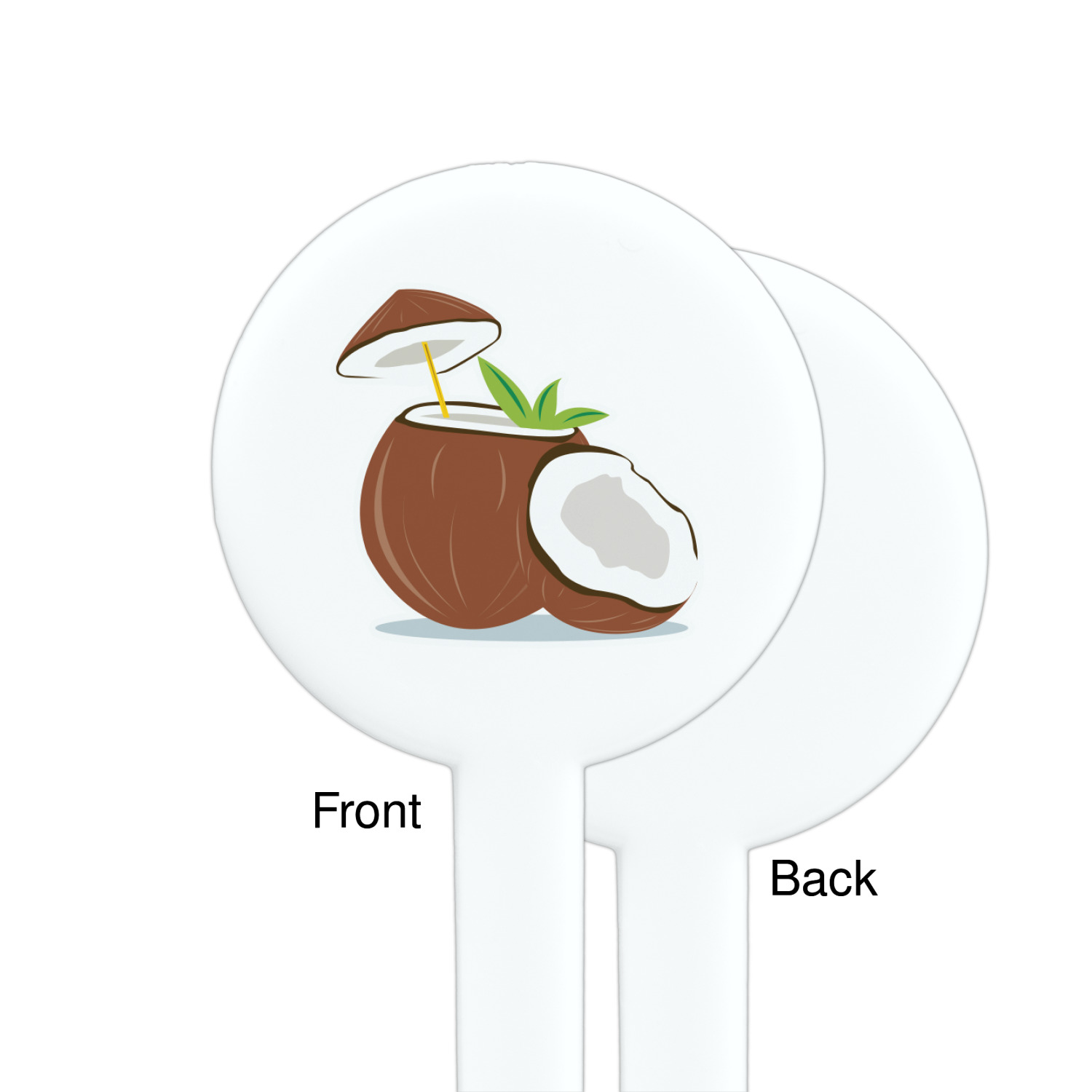 Coastal / Beach Style Designs for 7" Round Plastic Stir Sticks - White - Single-Sided