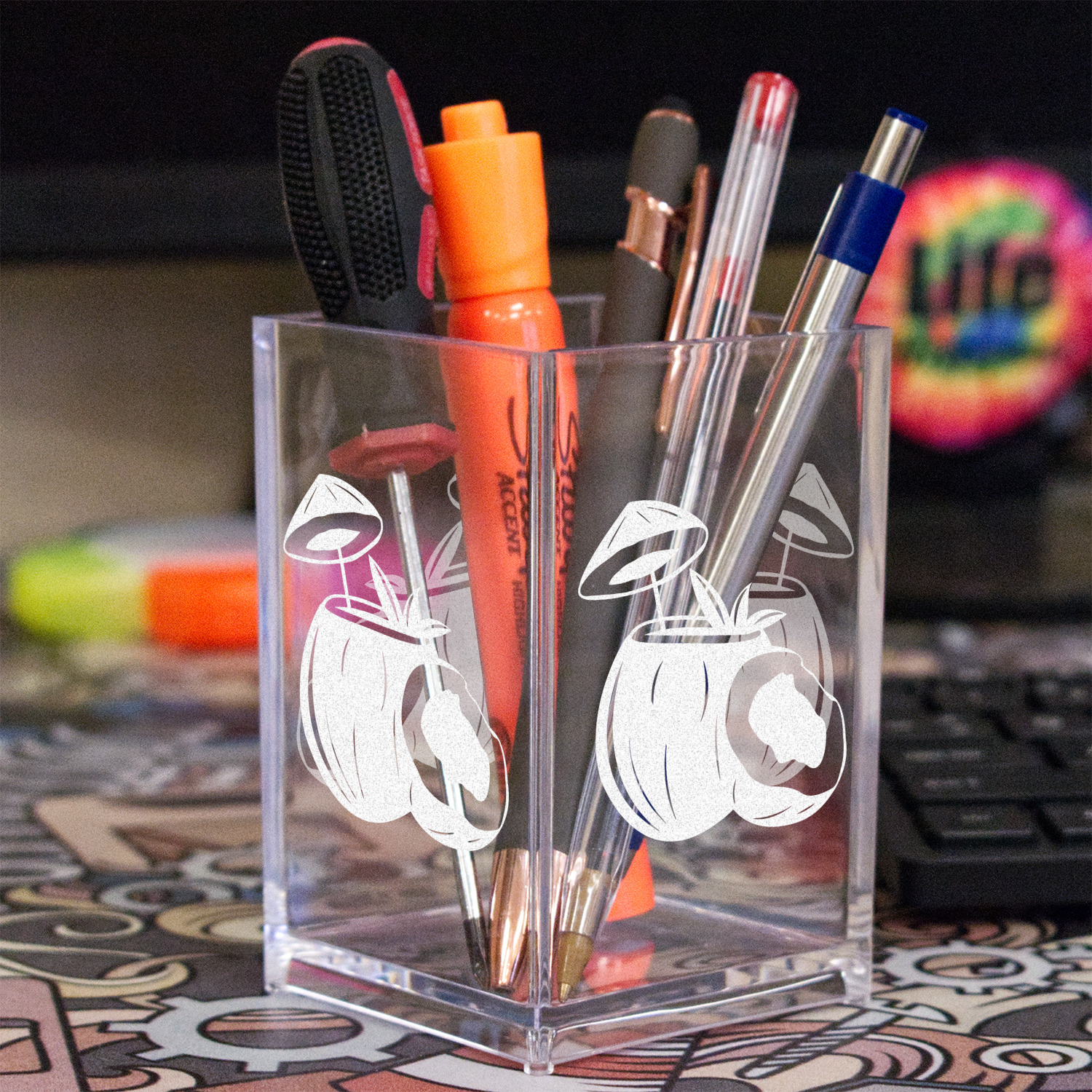Add a great accessory to your desk with one of these acrylic pen holders. A great way to store your writing utensils, and personalized to suit your needs.
