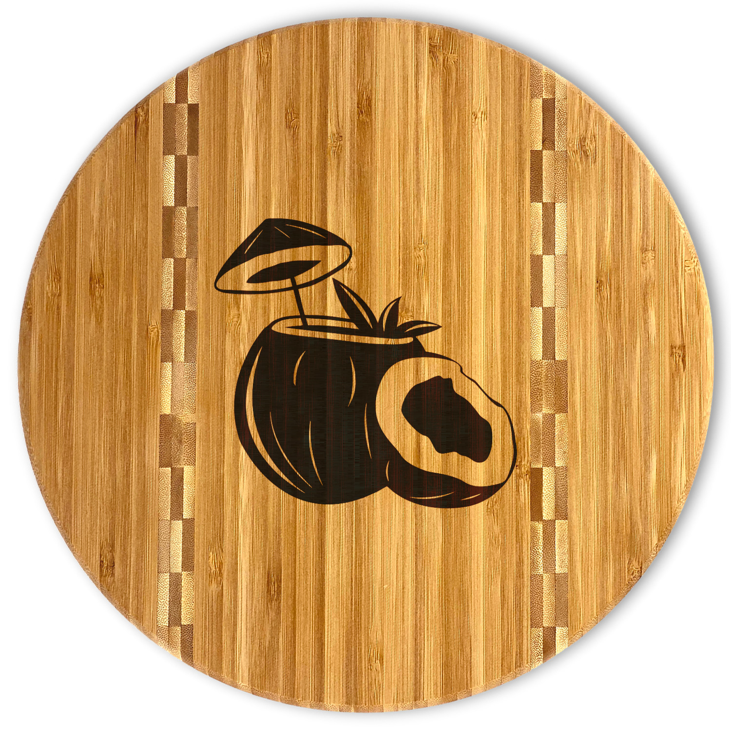 If you are looking for a nice well made bamboo cutting board look no further. This cutting board has a nice round design with a butcher block style inlay.