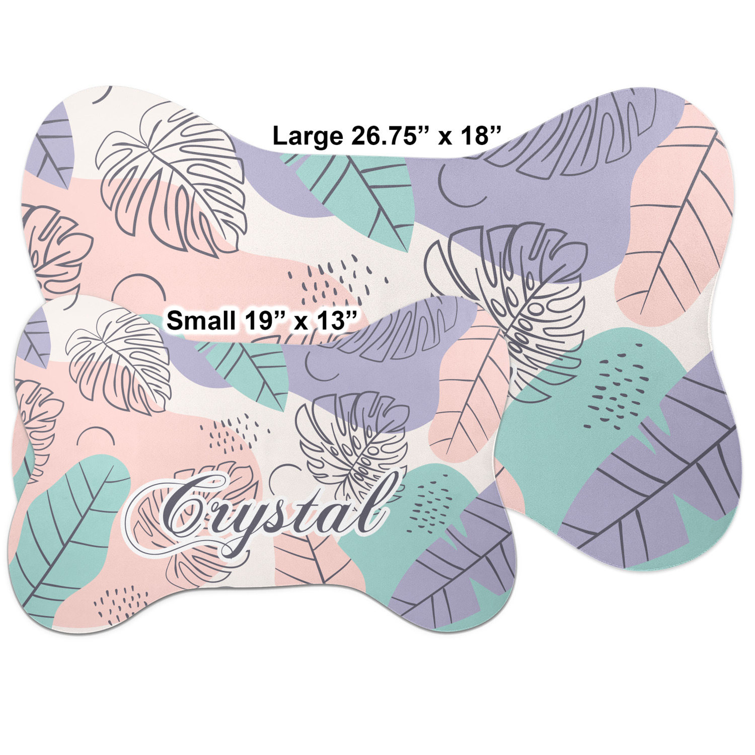The bone-shaped dog bowl mat is the perfect way to add a touch of personality to your dog's eating area! Dogs make inevitable messes, especially when they eat and drink. Save the integrity of your floors and the time spent cleaning them by purchasing a personalized mat that catches spills!