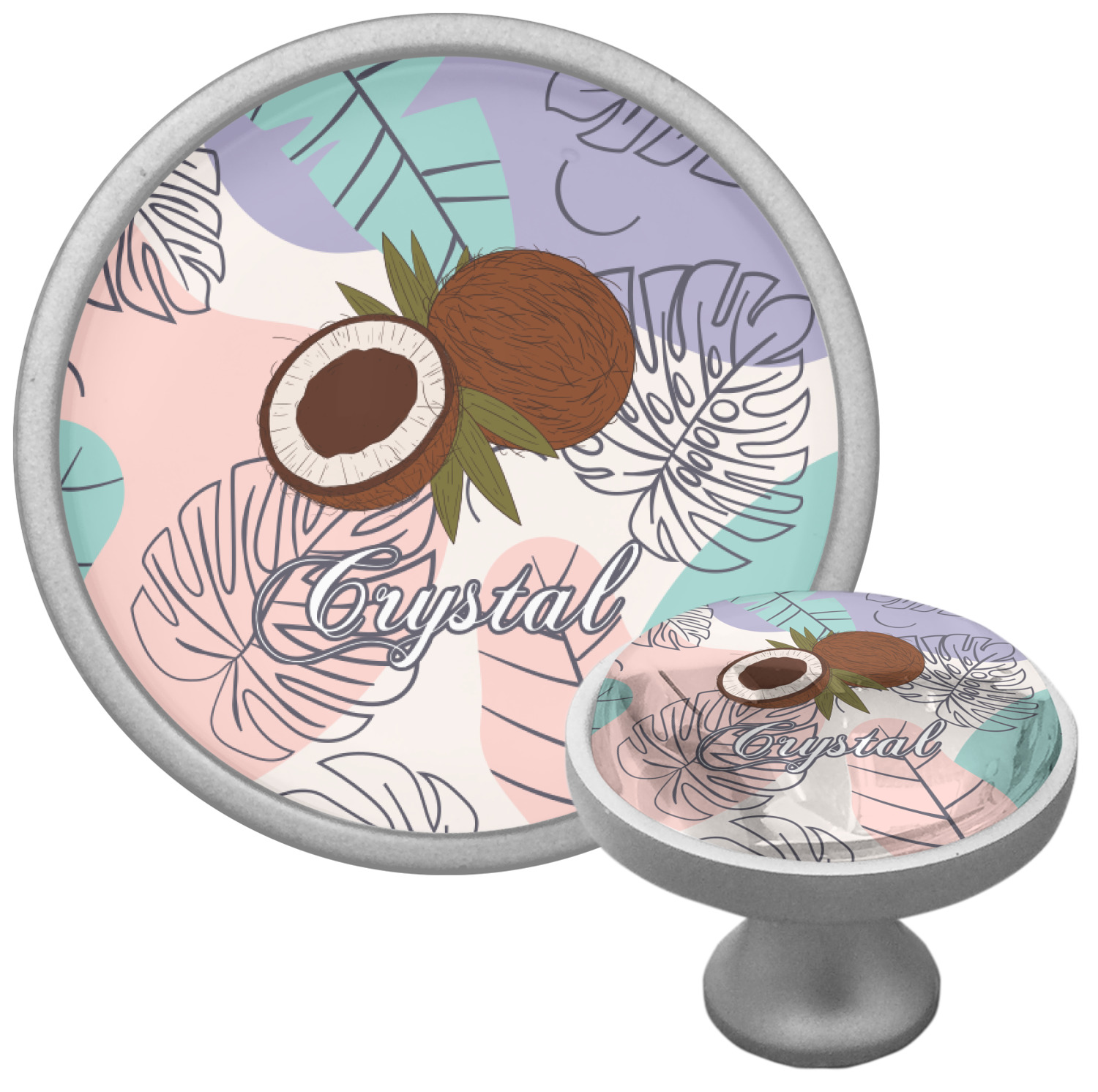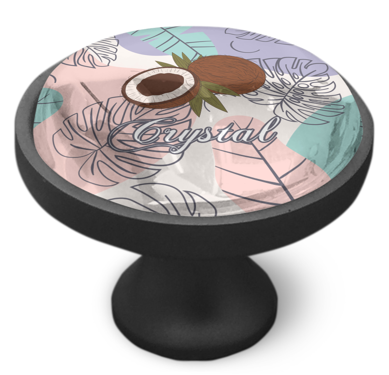 We sell these cabinet pulls in two different colors to better match your room's color scheme. We offer an oil-rubbed bronze base that is black in color, and a satin nickel option, which has a silver color. Your design is displayed across a high gloss vinyl insert that is placed on top of these cabinet handles. We then place a 1 inch thick glass cabochon atop the design, which seals the cabinet knob and makes the colors of your customization stand out. These custom cabinet knobs are approximately 1.3 inches in diameter. Your purchase includes a 1 inch screw that can be used to mount the knob to any cabinet in your home.