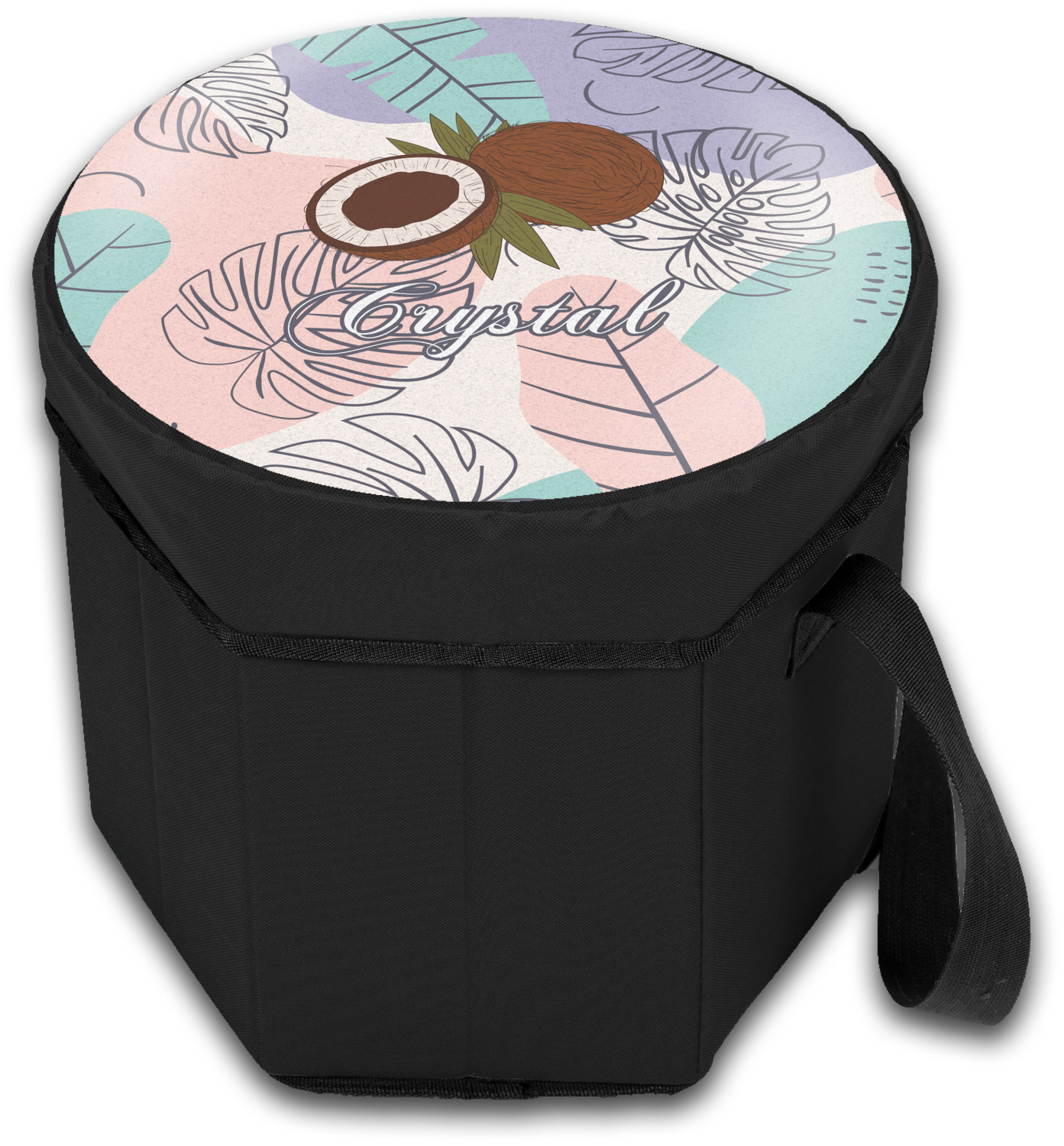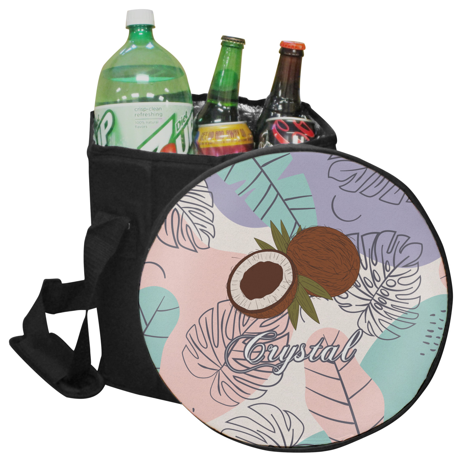 Our collapsible insulated coolers feature a unique six-sided hexagon shape, are lightweight, durable and can be turned into a seat. This cooler is fully insulated with silver foil lining to keep food and drinks hot or cold, and has a 12-quart capacity. Although this cooler collapses for easy transport, hidden inside are composition panels made of sturdy wood that give the frame strength and allow this cooler to be used as a seat. Simply sit down on the personalized cover and give your legs a break! (Maximum weight capacity of 200 pounds.)
