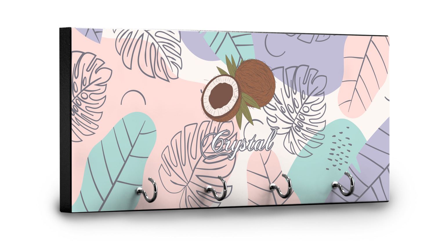 This 11" x 5" key hanger is made of sturdy wood and has four metal hooks lining the bottom. This is the perfect size for a family with several drivers. Not only can you hang keys on it though, but pet leashes and other small items. The board is black on the sides and back and is printed with the design of your choice on the front.