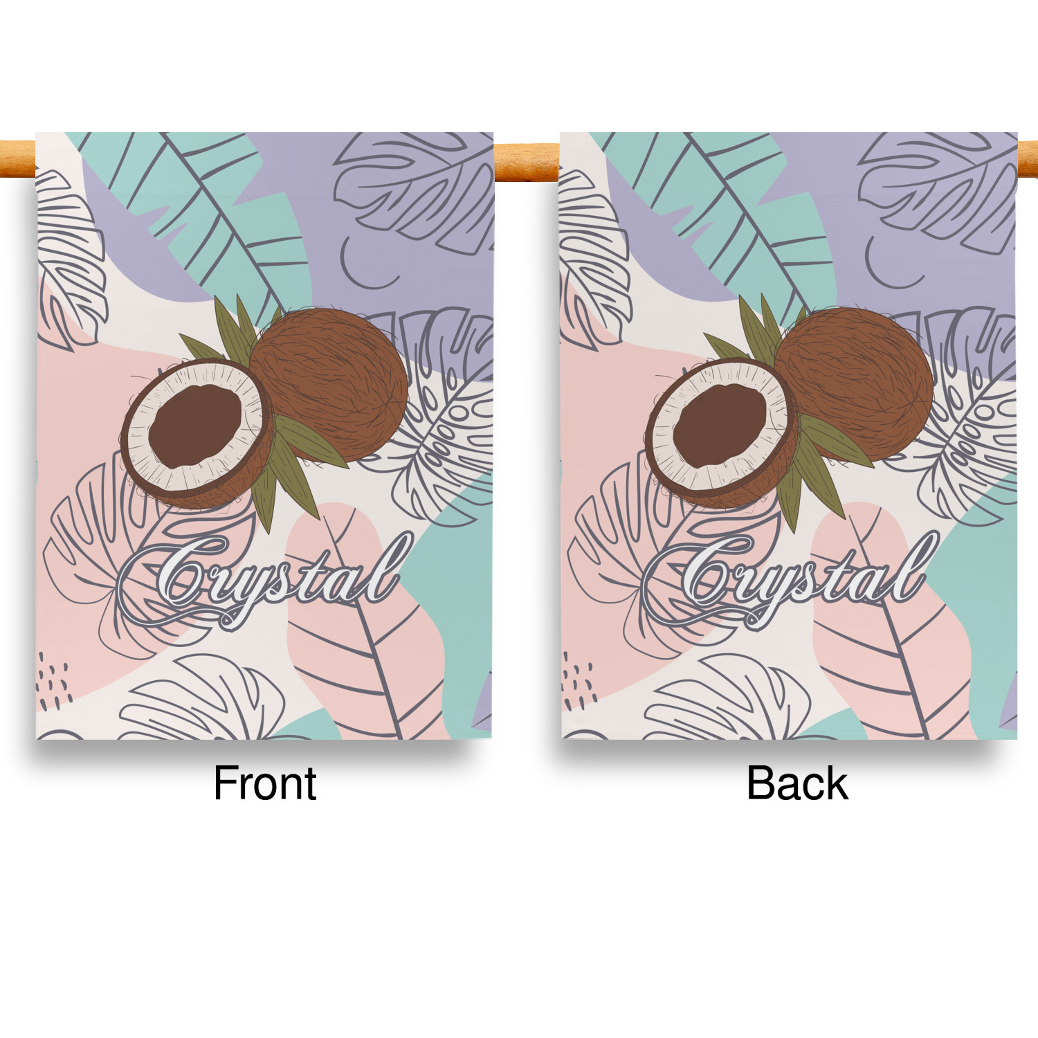 These custom garden flags are made of a durable, double-ply, polyester weave, allowing them to withstand the elements year round. The small flags measure at approximately 12 by 18 inches. The large flags measure out to 28 by 37 inches. You can order these decorative flags with your customization printed on the front only, or the front and back.