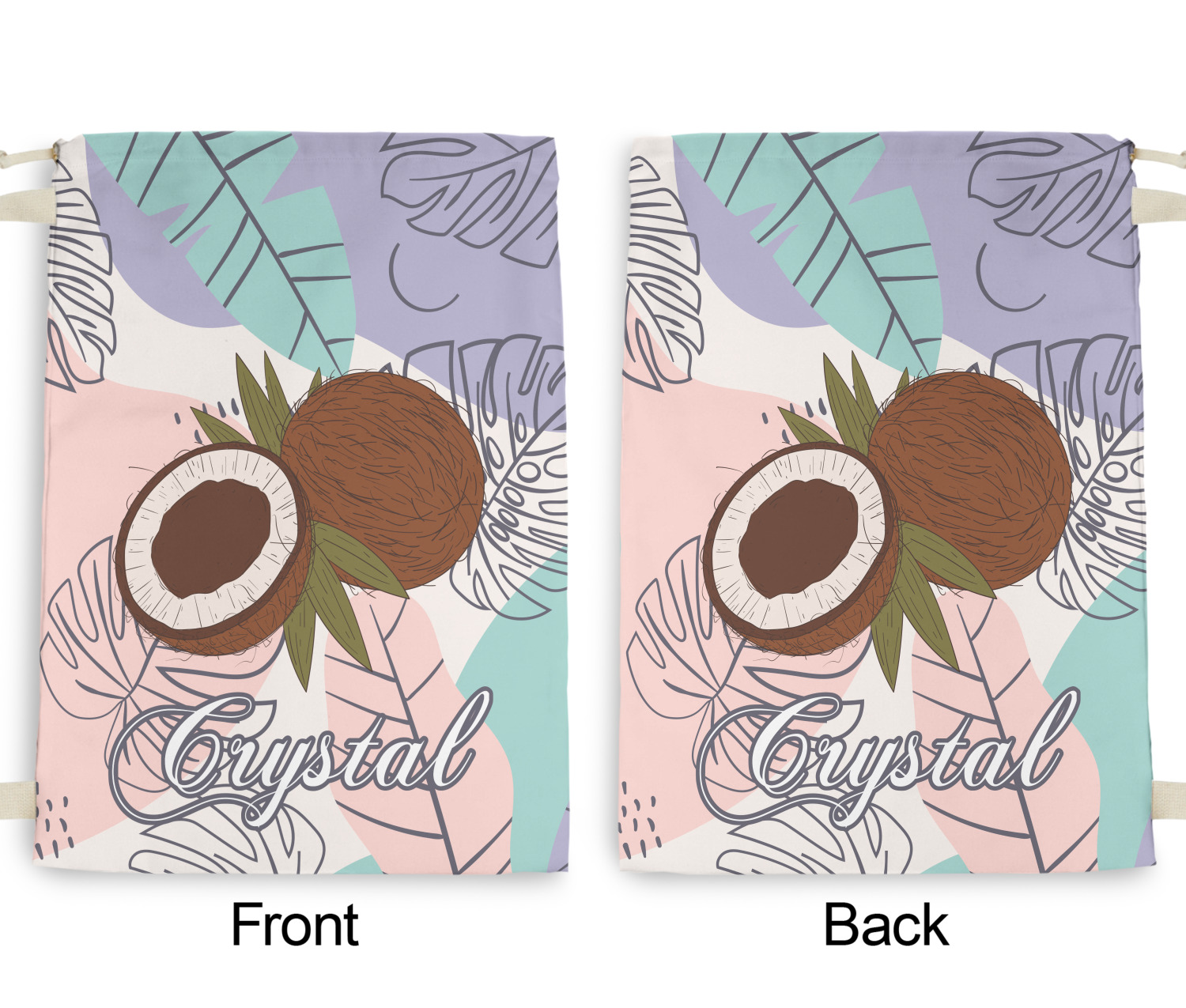Carry your laundry in style with these customized laundry bags. Available in two sizes, featuring a natural colored woven strap and a cinch cord, these bags hold a lot of clothes or anything else you want to fit in them.