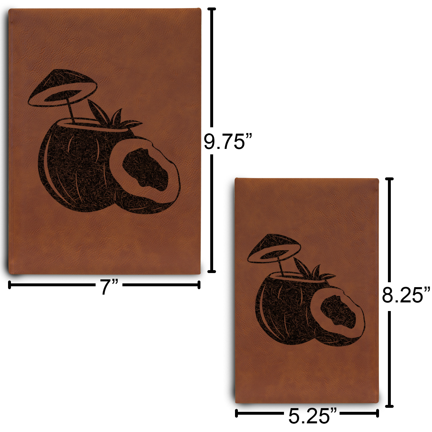 Available in two sizes - small at 8.25" x 5.25" and large at 9.75" x 7", these journal are the ideal size for purses and backpacks alike. Your personalized design is precisely laser engraved onto either the front, or the front and back of your new custom journal.