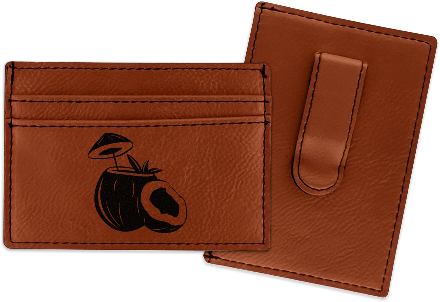 Made from a smooth brown leatherette material, these money clip wallets are the perfect accessory. They measure at approximately 4" x 2.75". On one side there is a money clip where you can slip in your cash. On the other side are three card slots for an ID and credit card or two. The money clip wallet will be laser engraved with your design on the side with the credit card slots. The graphic will come out as a black color.