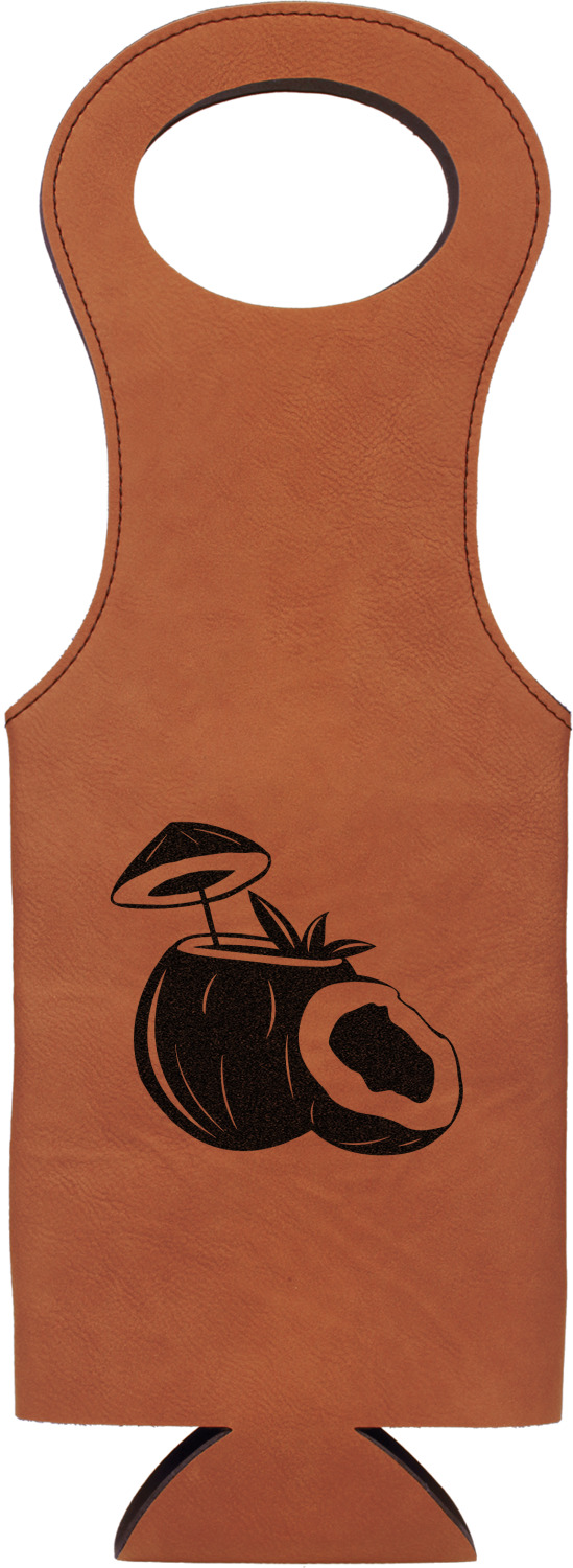 This wine carrier is made from a stunning leatherette, in a cognac-brown color. Strong, black stitching lines the sides of your wine bottle bag and provides extra durability. The interior is lined with a padded, black material to allow for a snug fit once your bottle is placed inside. At the top of this wine gift bag, you'll find two oval shaped handles that elegantly complements the rest of the bag's style. We provide you with the option of laser-engraving the front, or the front and back of your new personalized wine bag!