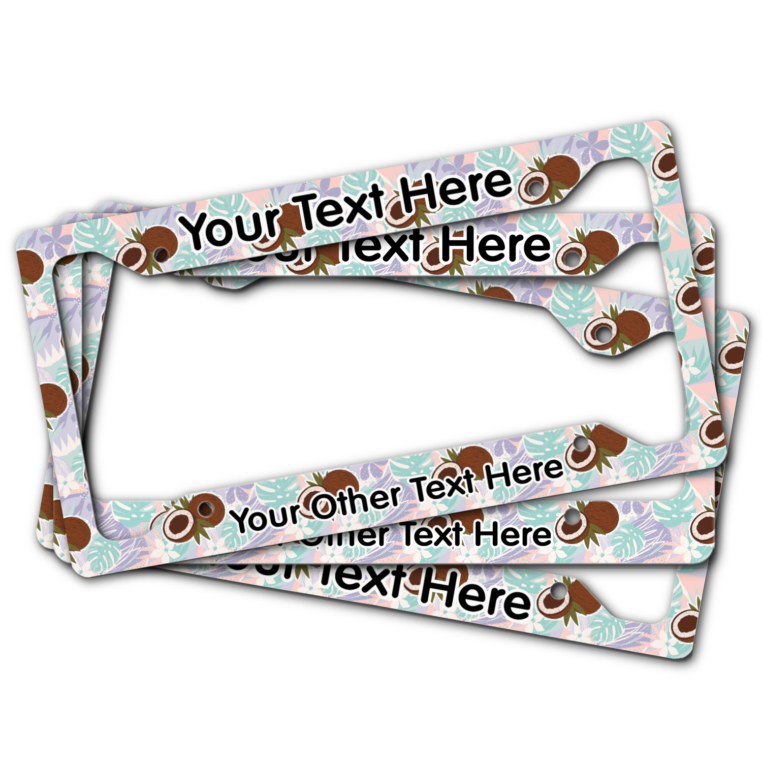 Each customizable license plate frame is made from a fine, yet sturdy aluminum material that measures approximately 6.5 x 12.15 inches, accommodating most standard license plates. The thickness allows the license plate frame to adhere completely to your license plate for a seamless look. We carry 3 styles of license plate frames to customize - Style A has texts on top and bottom, Style B offers texts on top and bottom as well as a full fill bottom border, and Style C offers text at the bottom only. The personalized license plate frame comes with four mounting holes for easy installation! We print each custom design across the frame with a glossy finish.