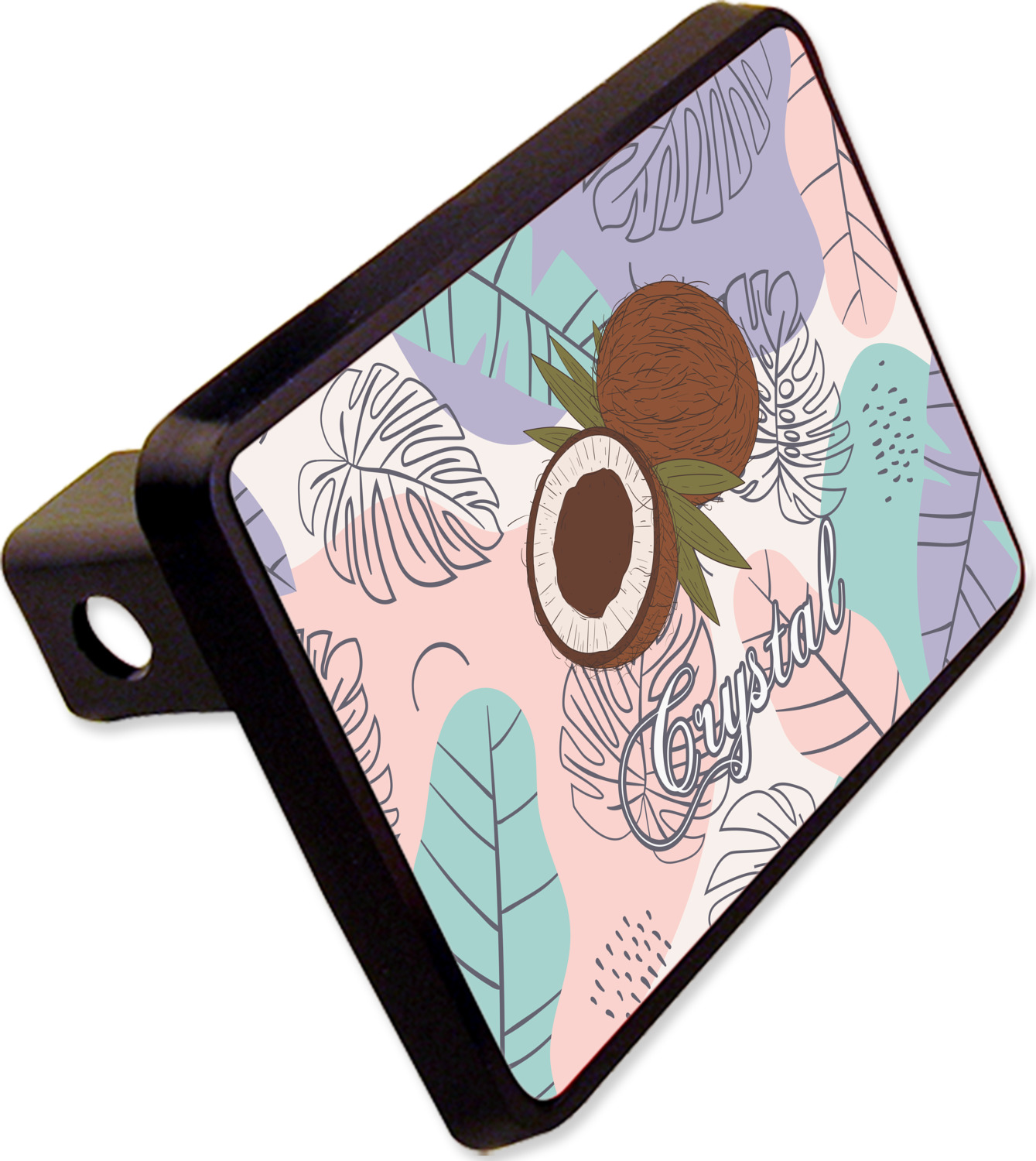 Our receiver hitch covers are molded, durable, and available in a size that fits 2in., square receiver holes. This model is best suited for a Class 3 or Class 4 hitch, but please consult our hitch sizing guide to make an informed purchase. We print your design on the surface of the rectangular cover, while the rest of the cover is a sleek, black color. The design's vibrancy will last up to 2 years in harsh sunlight. Designed for easy attachment, the cover slides easily into your trailer hitch and can be secured using a pin (not included).