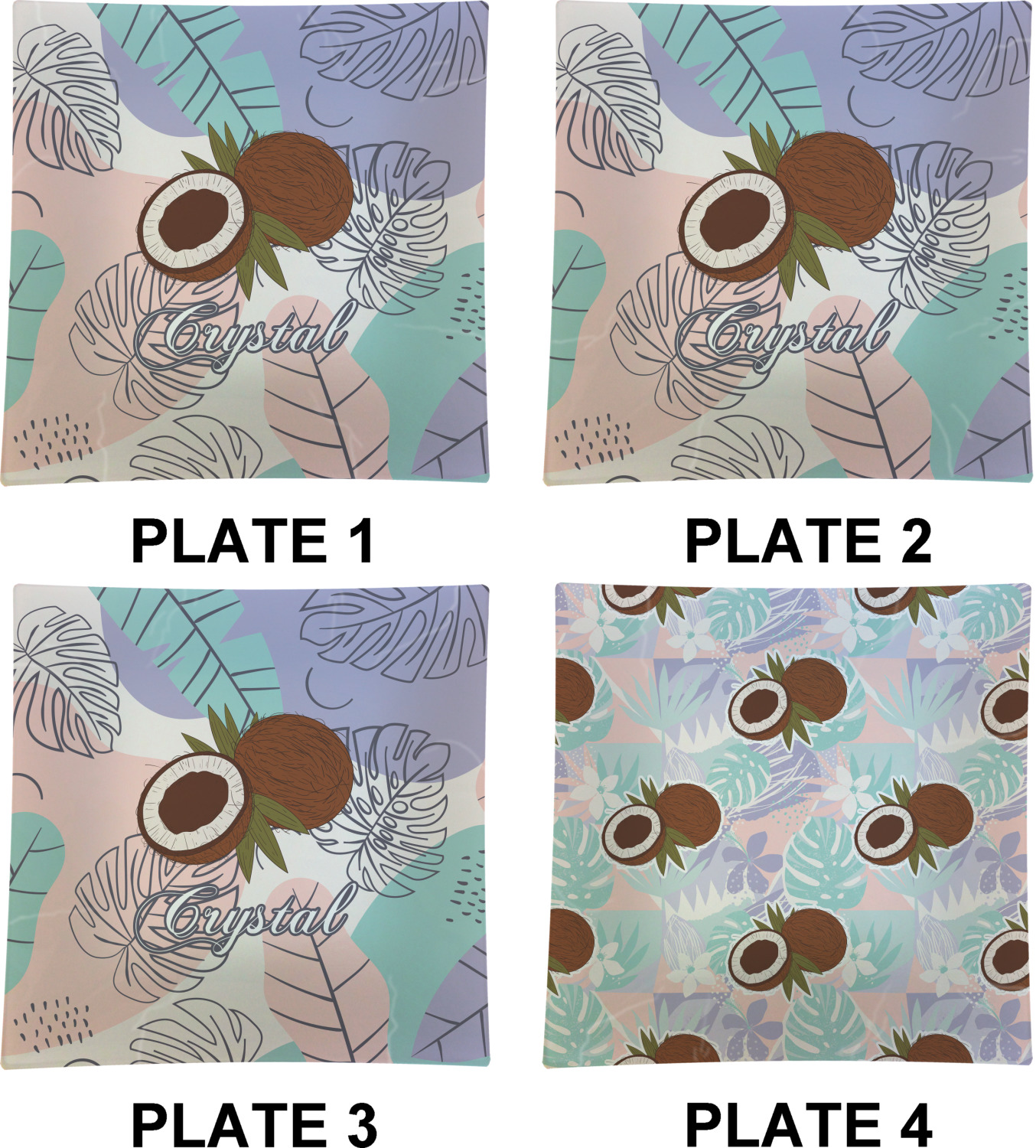 Coastal / Beach Style Designs for Glass Square Lunch / Dinner Plates 9.5" - Set of 4