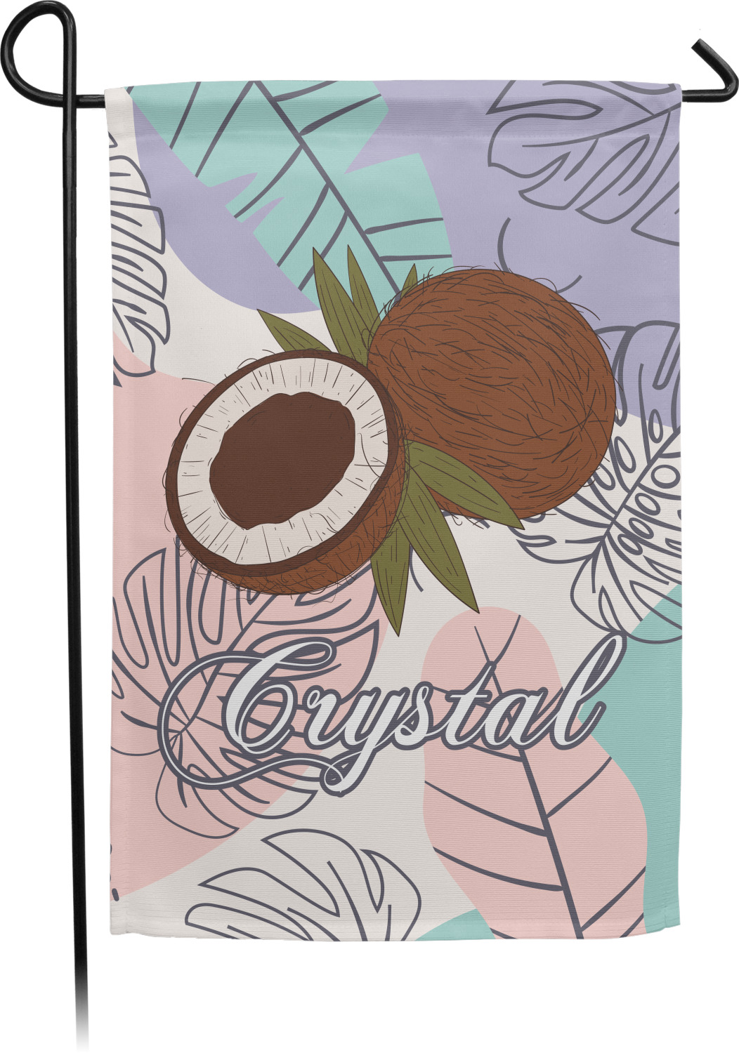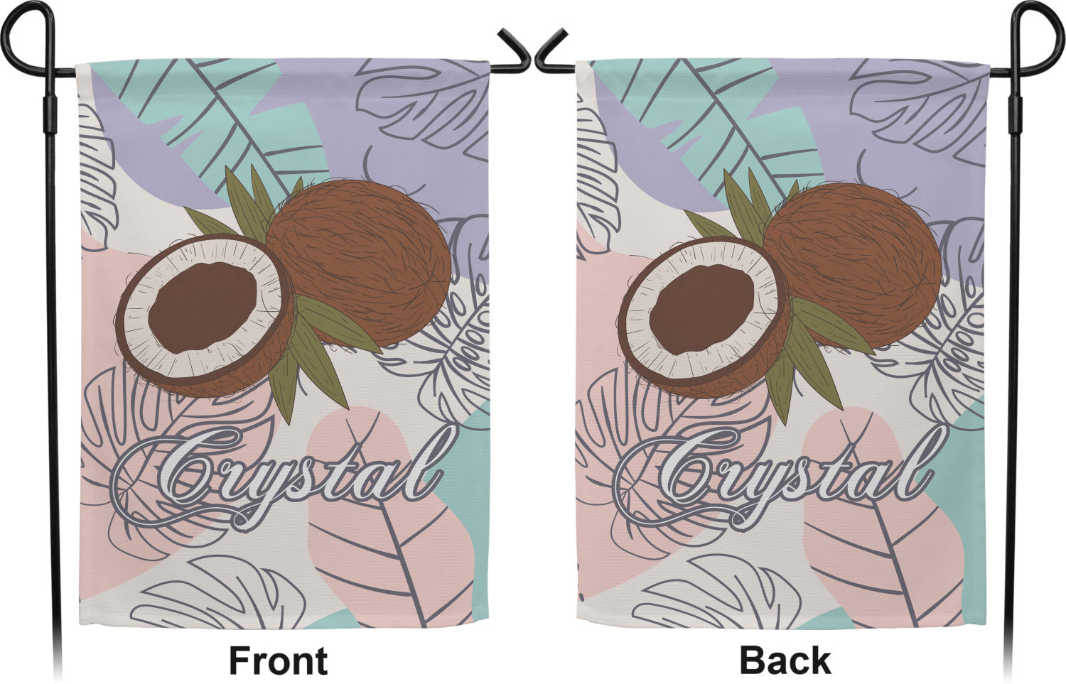 These custom garden flags are made of a durable, double-ply, polyester weave, allowing them to withstand the elements year round. The small flags measure at approximately 12 by 18 inches. The large flags measure out to 28 by 37 inches. You can order these decorative flags with your customization printed on the front only, or the front and back.