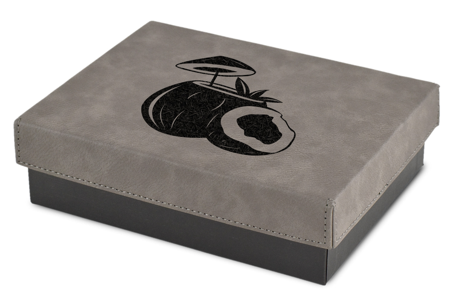 These gift boxes are available in 3 different sizes to accommodate various sized gifts. Available in gray as a neutral color for any occasion as well as to showcase your design boldly. Engraved with a laser this high quality paper board and faux leather gift box is unique and makes any gift stand out.