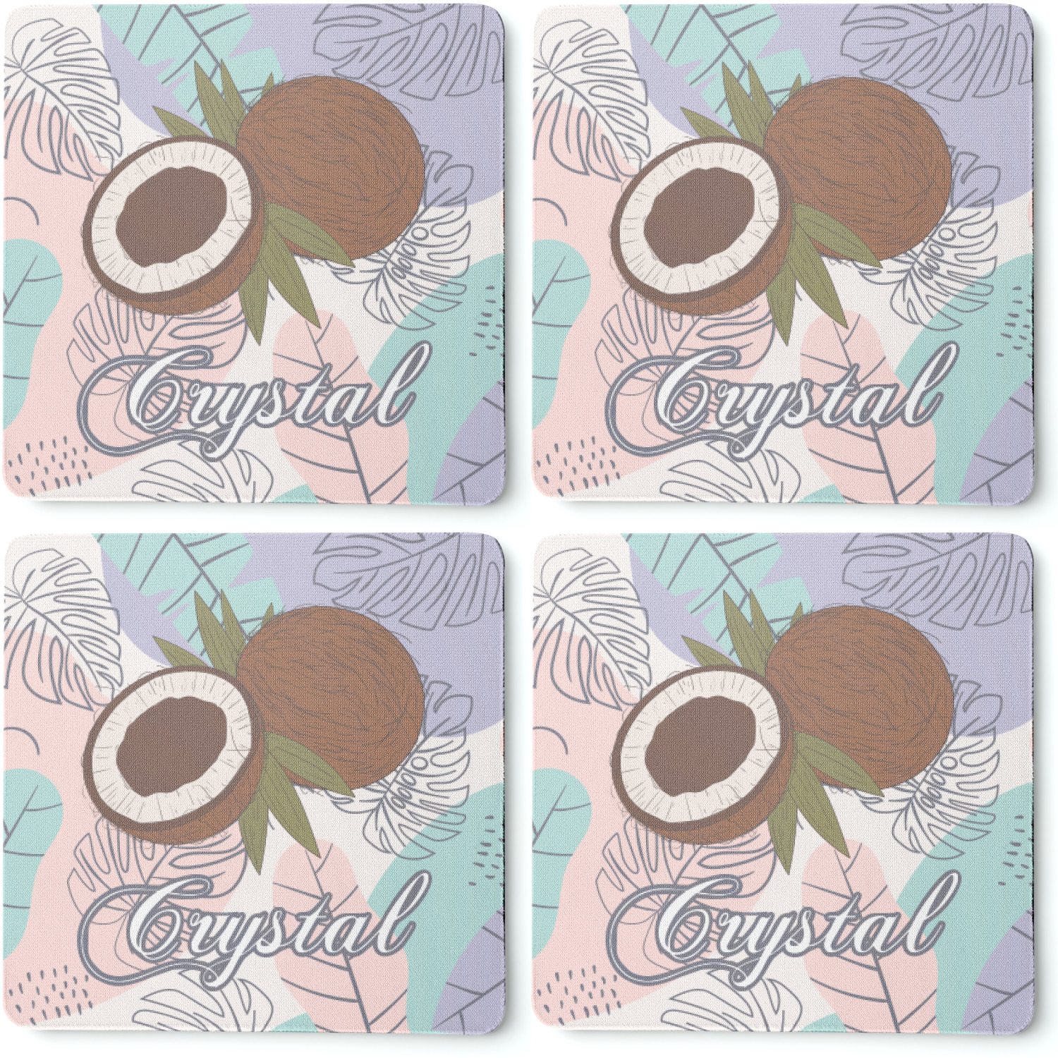 These drink coasters have a smooth, polyester top and a textured, rubber backing on its bottom. The non-slip rubber backing underneath works to keep any spills at bay. At 4 by 4 by 0.25 inches thick, these custom coasters are a suitable size for most drinkware. Your personalization is displayed atop the face of the cup coaster. We sell these rubber coasters in two different shapes: square and round. You can buy each shape as singulars or as a set of 4.