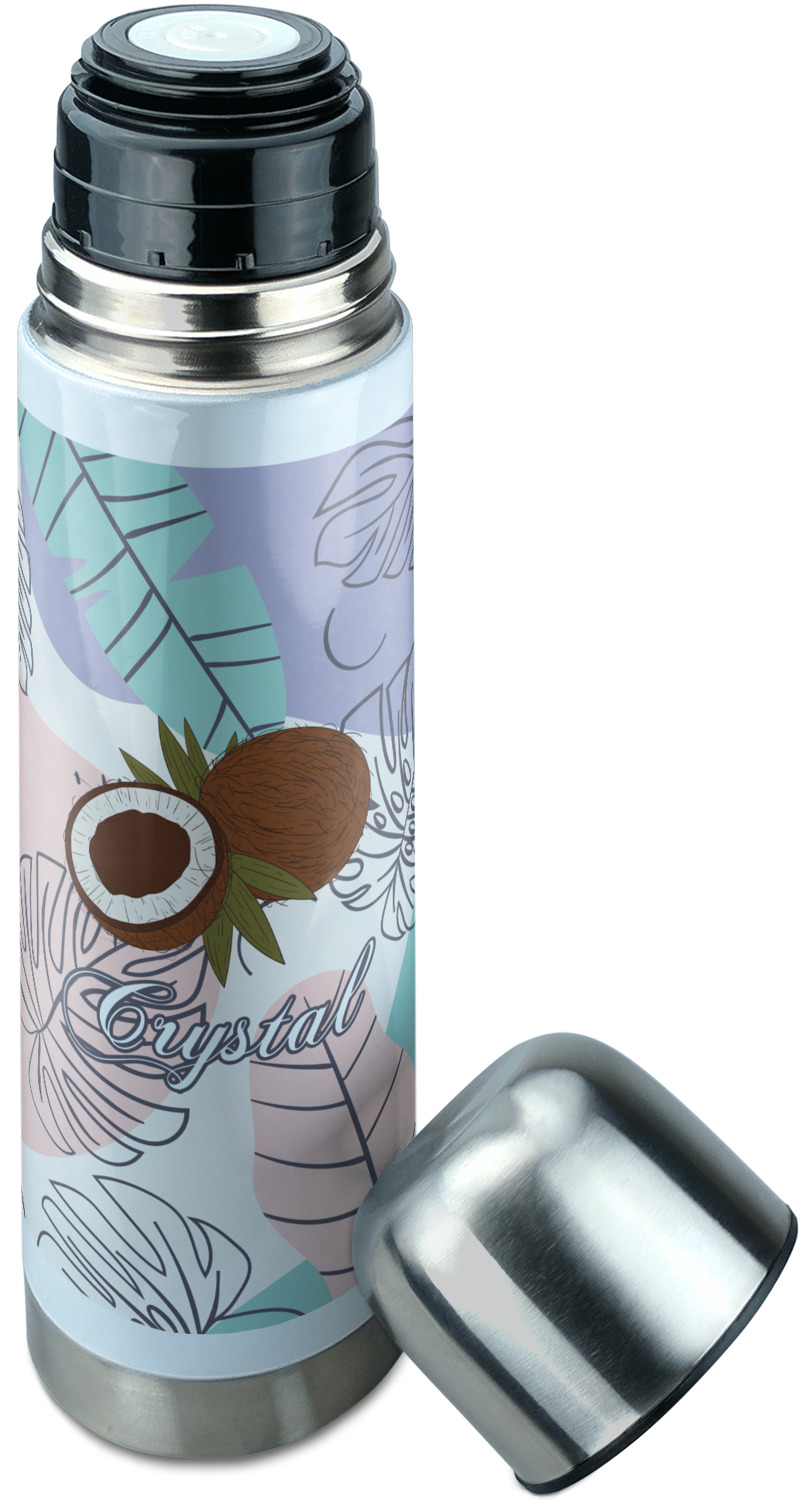 Manufactured from stainless steel, this thermos is built durably and double-walled insulated to preserve the temperature of your drink for hours. It also features a screw off lid that is made to also function as a small cup. Upon unscrewing this part of the thermos bottle, a pop-open, pour feature emerges. This feature allows you to slowly pour your beverage into your lid, ensuring a steady, controlled pour into your lid or other cup. With a capacity of 25 ounces, these large thermoses can hold several servings of your favorite beverage. Your customization is displayed all around the bottle with bright, vibrant color.