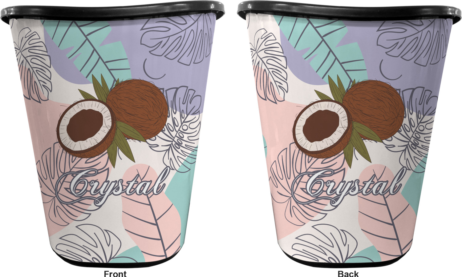 You can choose to purchase these decorative wastebaskets in either a white or a black color that will show on the base and the upper rim. Your customization is printed on a high-gloss, fine-quality vinyl adhesive, and you can choose to either have this adhesive applied to one side only or to both sides. As such, this plastic wastebasket can be single-sided or double-sided, depending on your creative vision. Your customization is printed using durable inks, making the design waterproof and resistant to fading over time.
