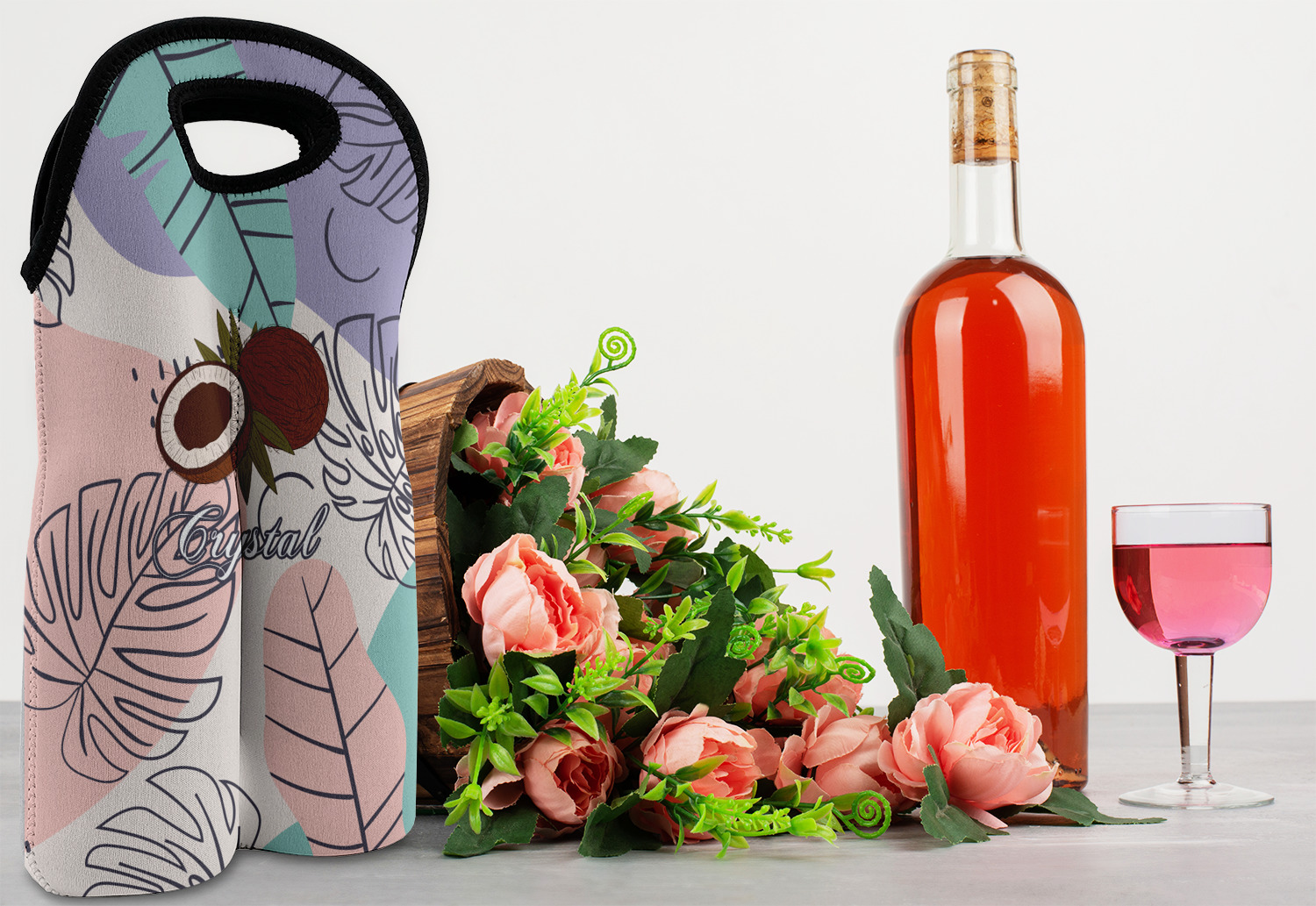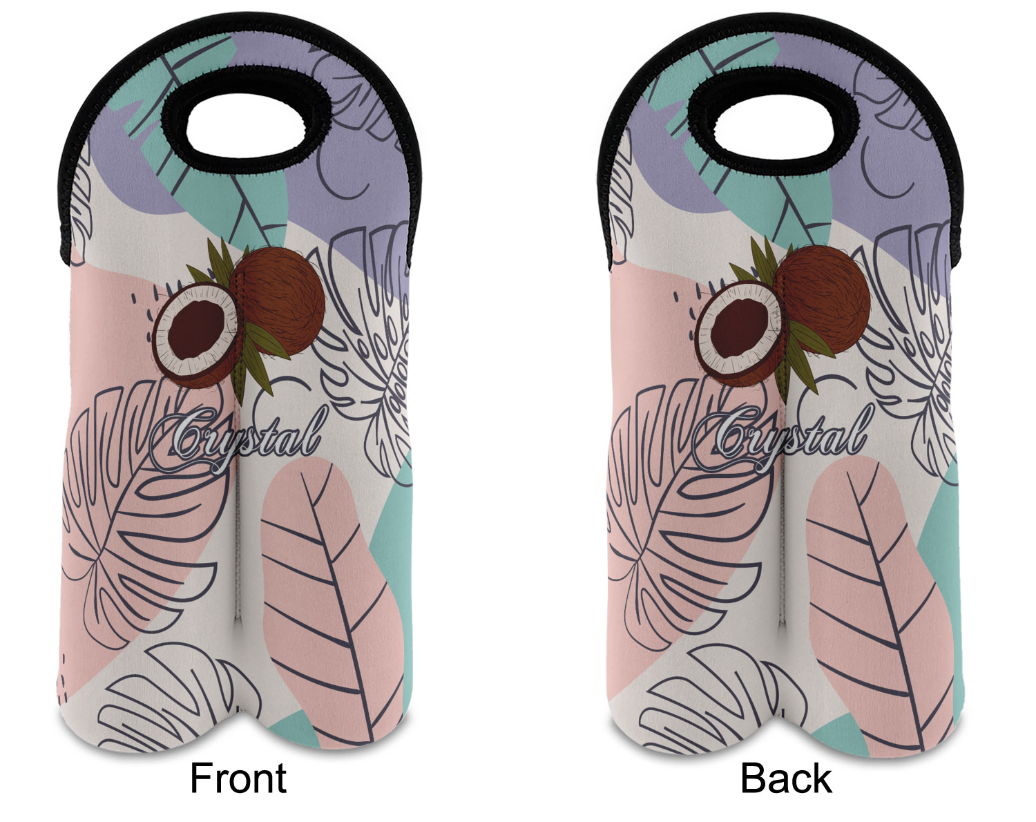 These tote bags are insulated to keep the bottles cold and have a stitched separation down the middle and double handles to keep the two bottles safe and secure during travels.