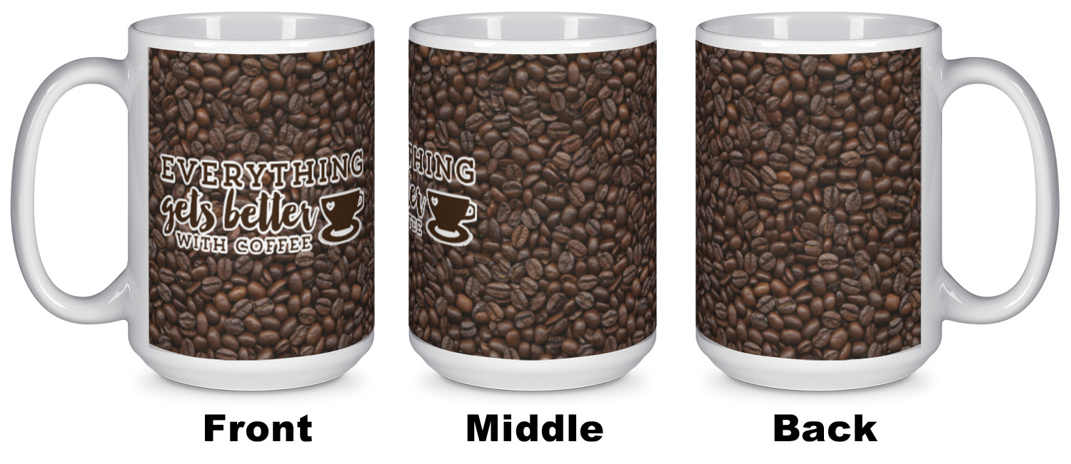 Our ceramic mugs have your design or photo printed along the surface with a gloss finish. The ceramic material of our mugs is dishwasher and microwave safe so you can reheat your tea or coffee if needed! We offer two different base colors with multiple mug sizes. The white ceramic mugs come in three size options - 11 oz., 15 oz., and 20 oz. Our black ceramic mugs are sold in either 11 oz. or 15 oz. sizes.