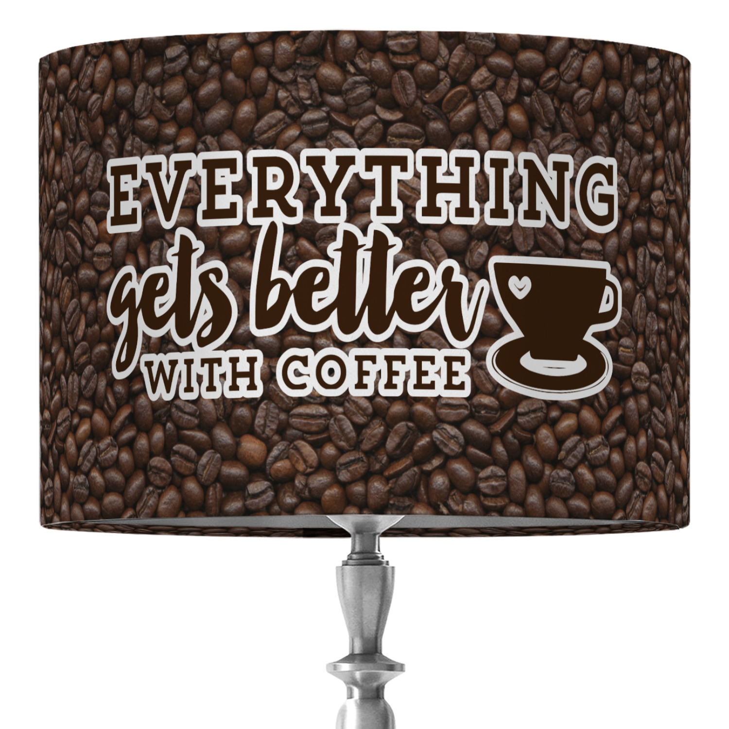 This design has a fun realistic picture of coffee beans for the background. On top of that is a fun quote saying that "everything gets better with coffee." The coordinating design has the words "coffee addict." There are also plenty of other coffee quotes to choose from in our design center.