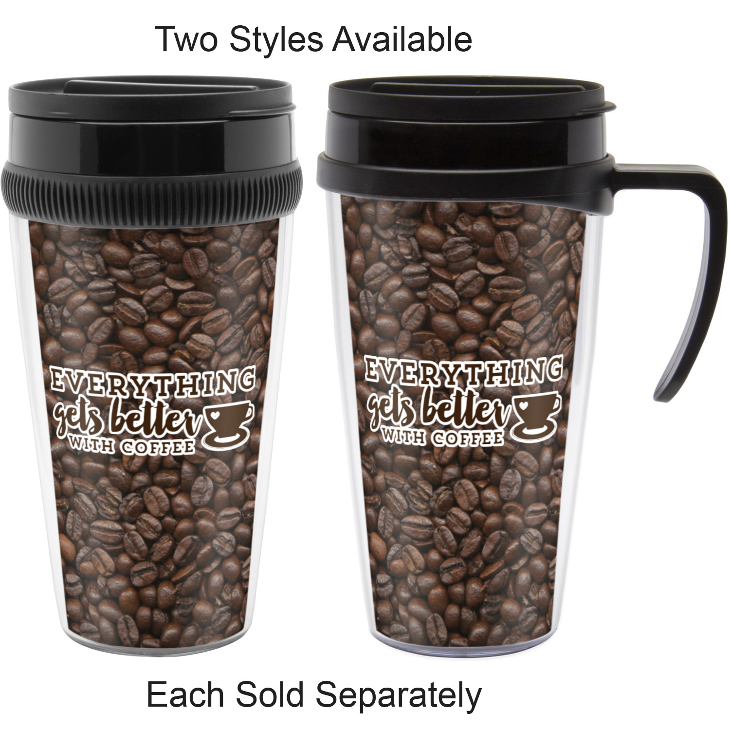 Keep your drink secure while on your daily commute with one of our personalized travel mugs! These travel mugs will add a splash of color and creativity to your kitchen counter-top, car cup holder, office desk, or wherever you choose to place them! With these custom mugs, you'll never have to settle for a boring, run-of-the-mill travel mug.