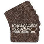 This design has a fun realistic picture of coffee beans for the background. On top of that is a fun quote saying that "everything gets better with coffee." The coordinating design has the words "coffee addict." There are also plenty of other coffee quotes to choose from in our design center.