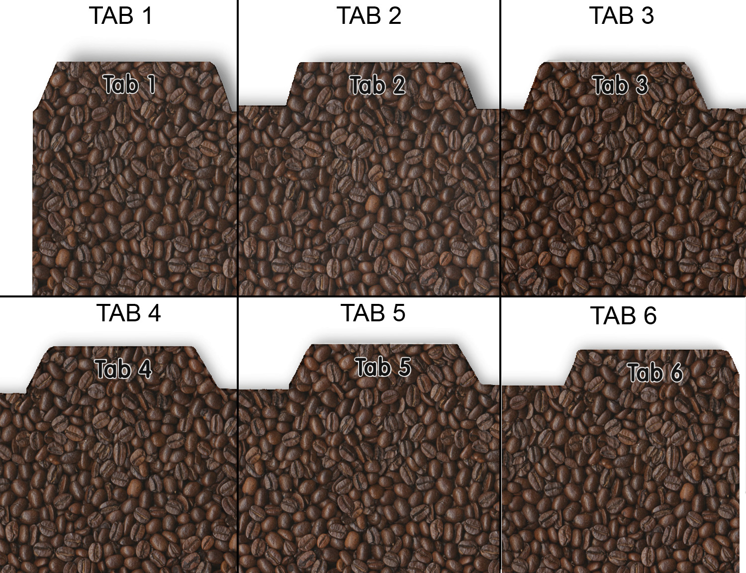 Whether you use binders at school or at work, we have designs to suit all of them. Available in 5 or 6 tab sets, you are sure to find a set to suit your needs. The back of each one is white and can be used to take notes, write vital information on, etc.