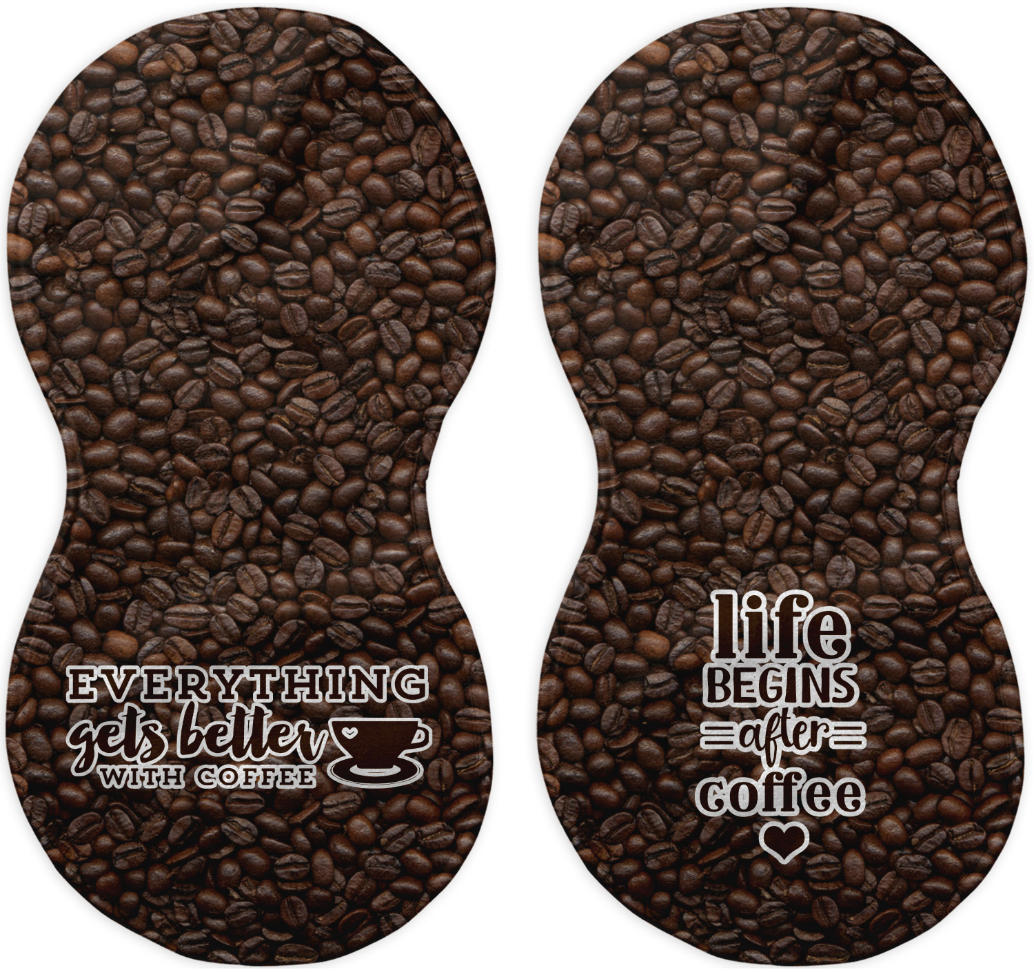 This design has a fun realistic picture of coffee beans for the background. On top of that is a fun quote saying that "everything gets better with coffee." The coordinating design has the words "coffee addict." There are also plenty of other coffee quotes to choose from in our design center.