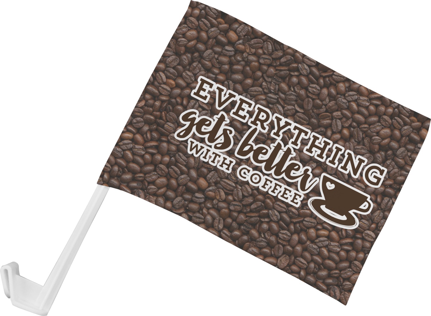 Our personalized flags are made from a durable, yet lightweight cloth that will proudly bear your logo or design of choice, while withstanding the outside elements. We have two size options - 8" x 11" and 11" x 15". Both come with a flag pole which includes a clip that secures the pole to the side window, whether it is rolled up or down. The flags are printed on both sides to display your design from all directions.