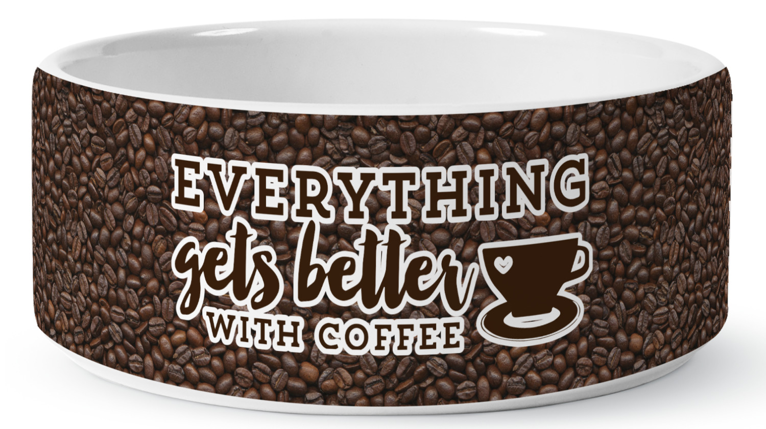 We carry these custom dog bowls in two available sizes: medium and large.The medium is 6 inches in diameter and 2.5 inches tall, and can therefore suit pets who eat up to 2.5 cups of food per meal. The large pet bowl is 7 inches in diameter and 3 inches tall, and suits pets who require up to 4.5 cups of food per meal.