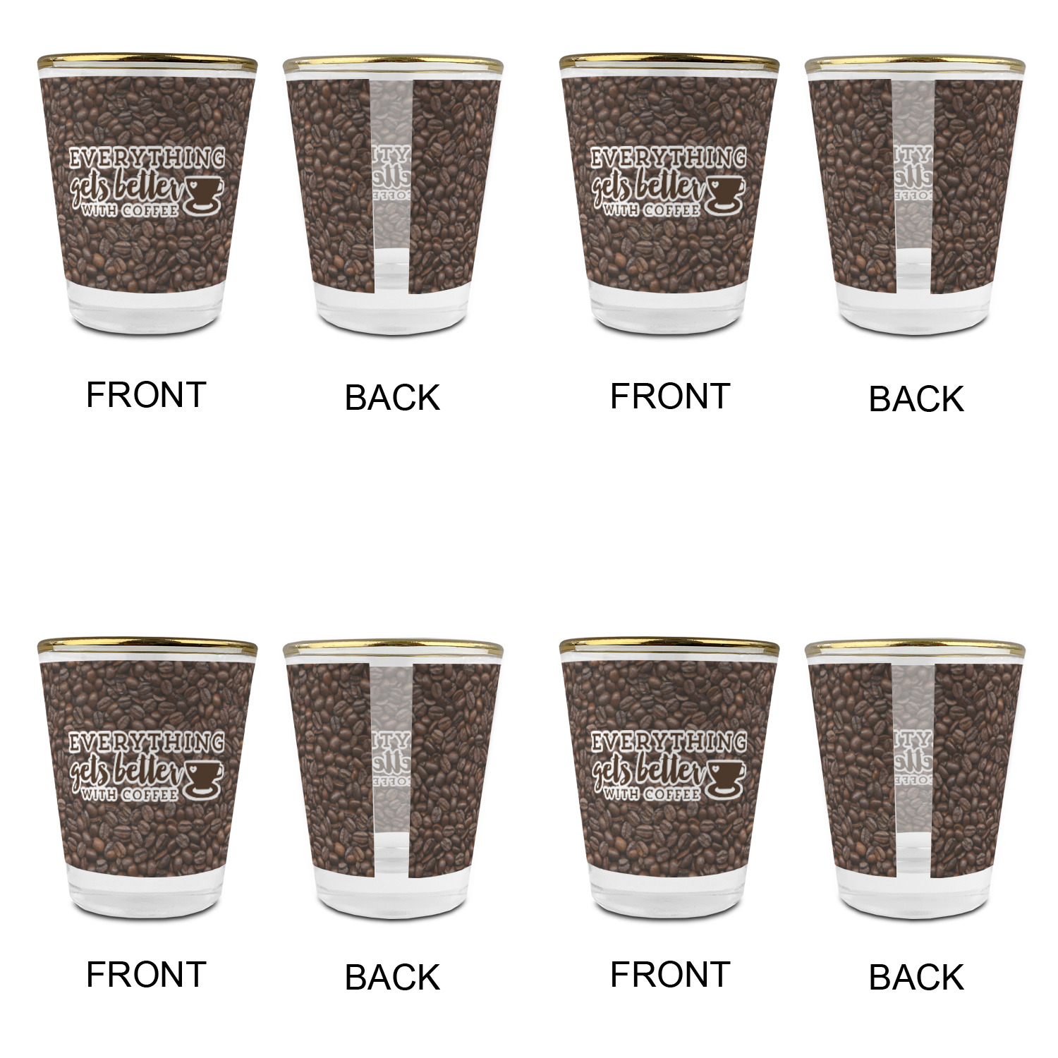 Quote + Saying Designs for Glass Shot Glasses - 1.5 oz - with Gold Rim - Set of 4