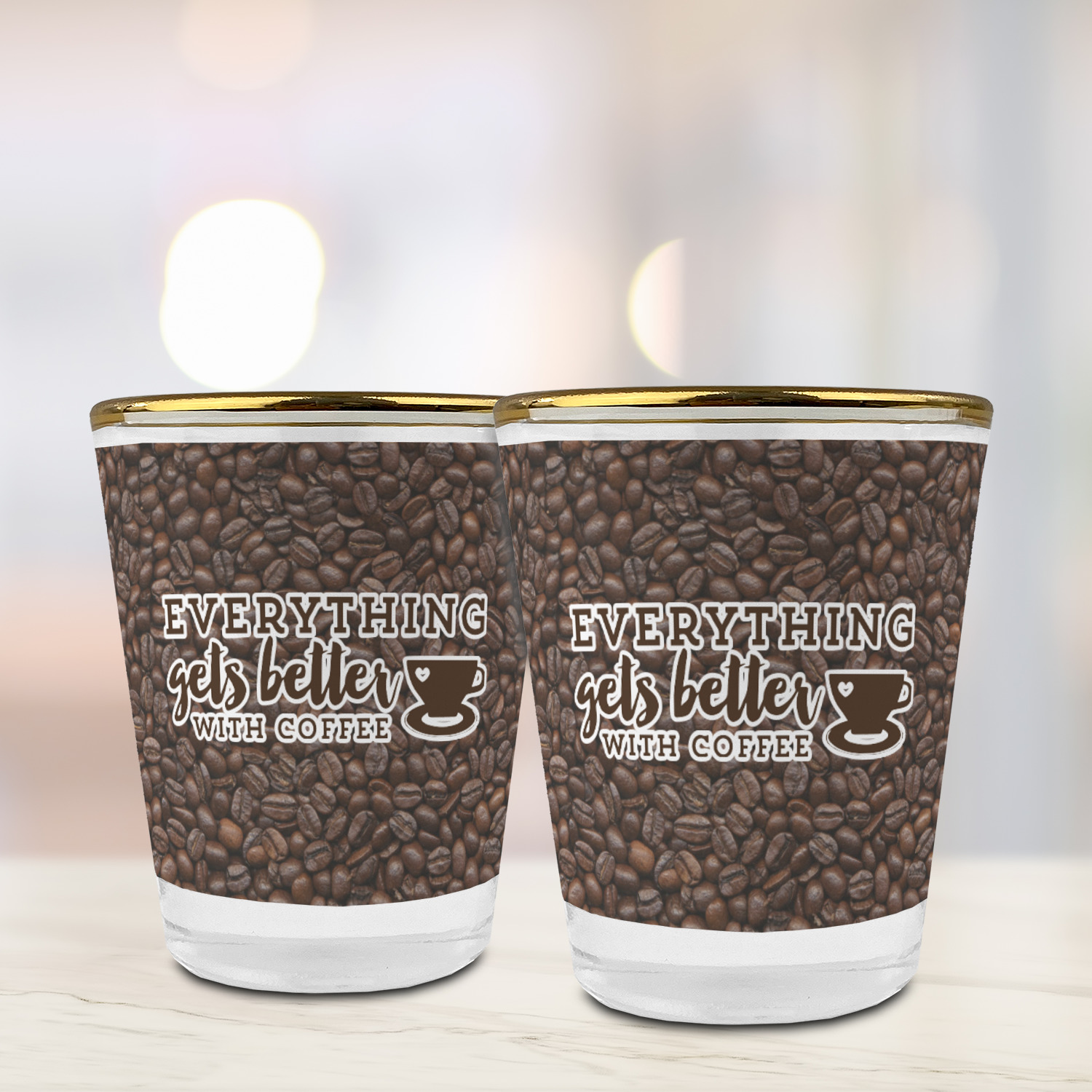 Available in plain frosted glass or frosted glass with a gold rim, you are sure you be able to get a shot glass to match your style. Buy a single or a set of 4, all of which can be designed separately to get you just what you want and need.