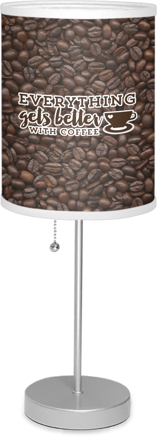 This design has a fun realistic picture of coffee beans for the background. On top of that is a fun quote saying that "everything gets better with coffee." The coordinating design has the words "coffee addict." There are also plenty of other coffee quotes to choose from in our design center.