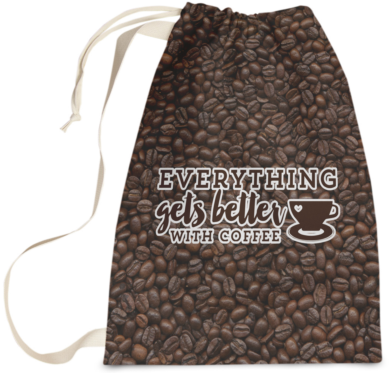 Carry your laundry in style with these customized laundry bags. Available in two sizes, featuring a natural colored woven strap and a cinch cord, these bags hold a lot of clothes or anything else you want to fit in them.