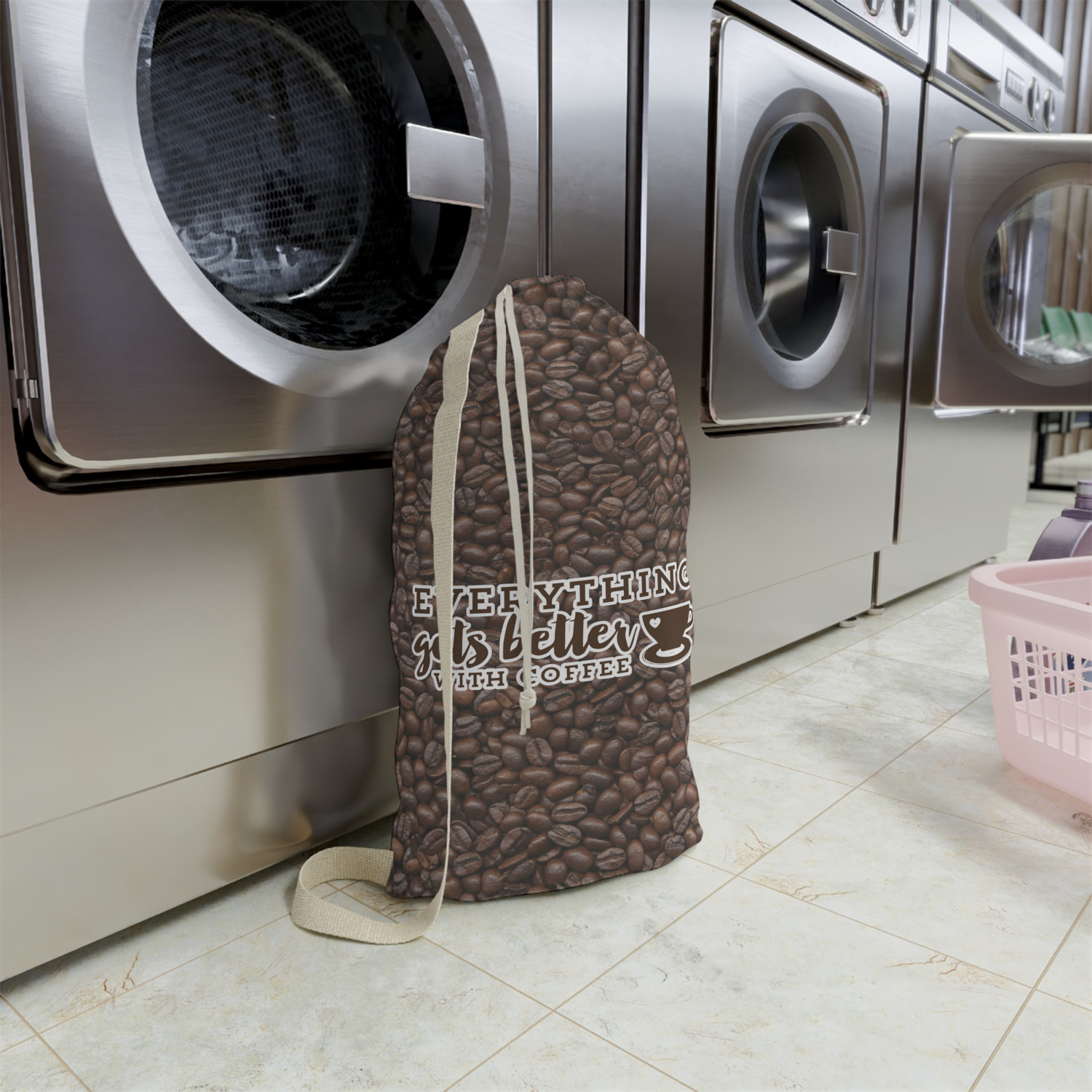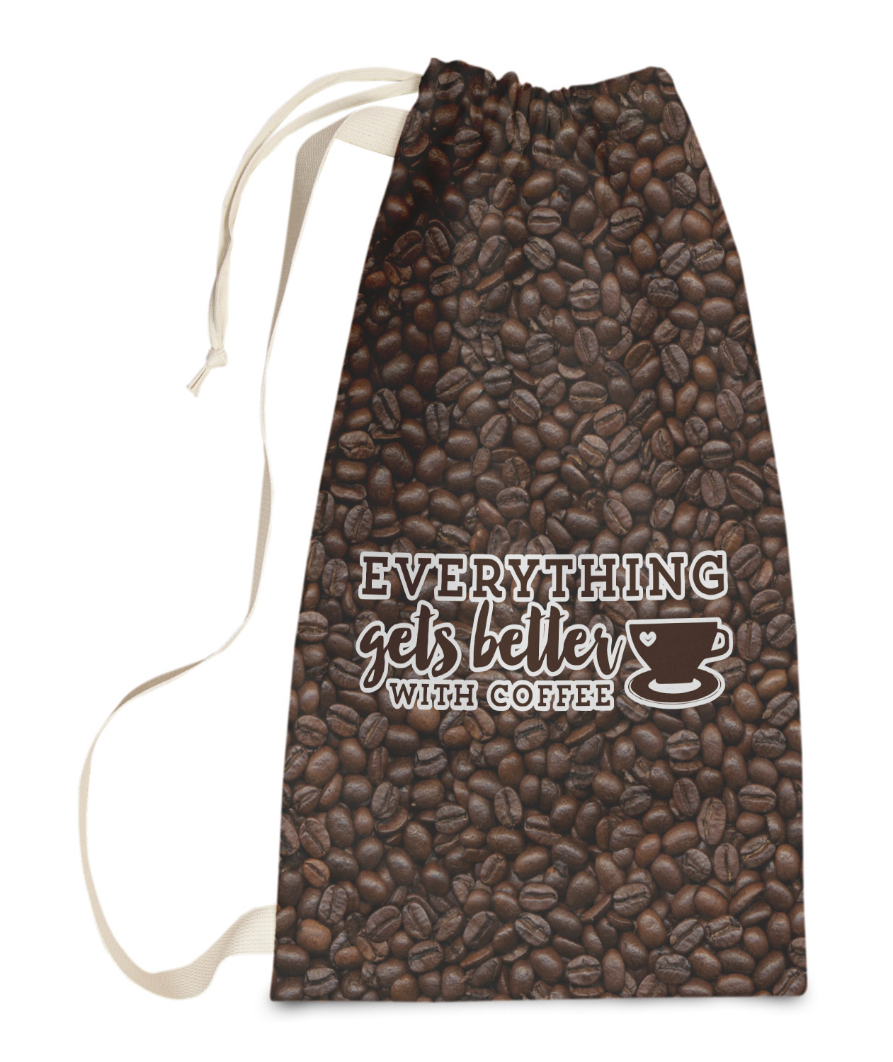 Carry your laundry in style with these customized laundry bags. Available in two sizes, featuring a natural colored woven strap and a cinch cord, these bags hold a lot of clothes or anything else you want to fit in them.