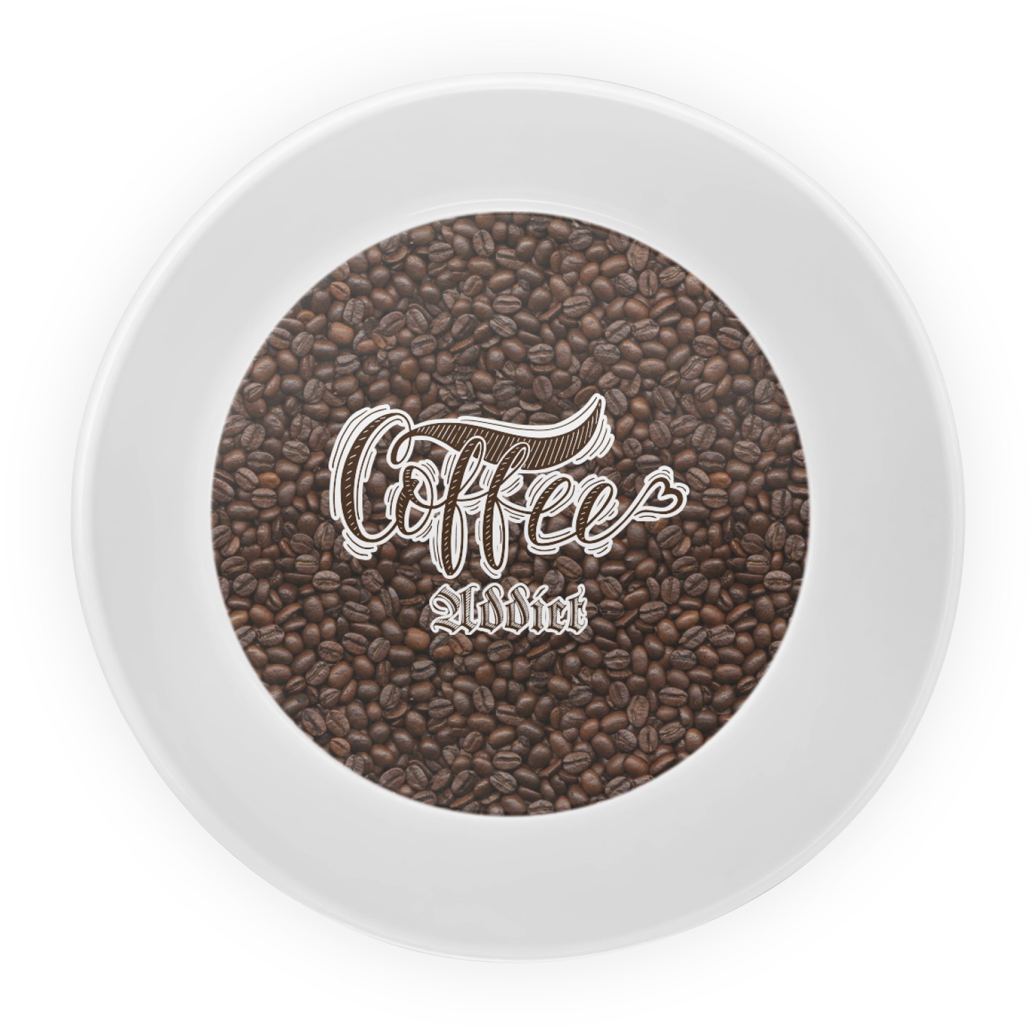This design has a fun realistic picture of coffee beans for the background. On top of that is a fun quote saying that "everything gets better with coffee." The coordinating design has the words "coffee addict." There are also plenty of other coffee quotes to choose from in our design center.