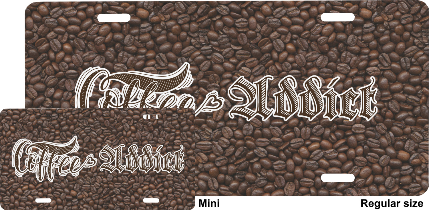 This design has a fun realistic picture of coffee beans for the background. On top of that is a fun quote saying that "everything gets better with coffee." The coordinating design has the words "coffee addict." There are also plenty of other coffee quotes to choose from in our design center.