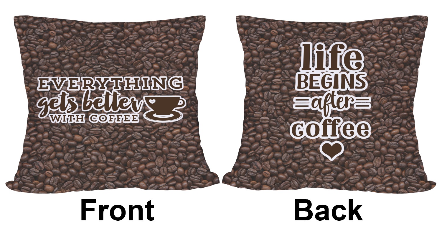 This design has a fun realistic picture of coffee beans for the background. On top of that is a fun quote saying that "everything gets better with coffee." The coordinating design has the words "coffee addict." There are also plenty of other coffee quotes to choose from in our design center.