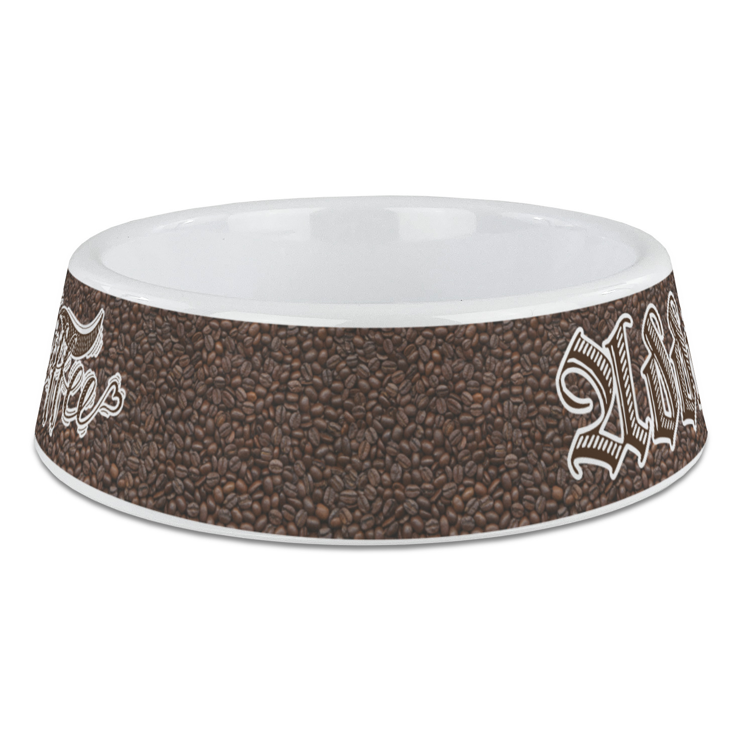 This design has a fun realistic picture of coffee beans for the background. On top of that is a fun quote saying that "everything gets better with coffee." The coordinating design has the words "coffee addict." There are also plenty of other coffee quotes to choose from in our design center.