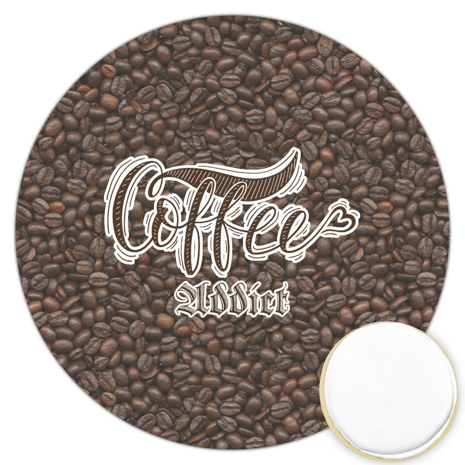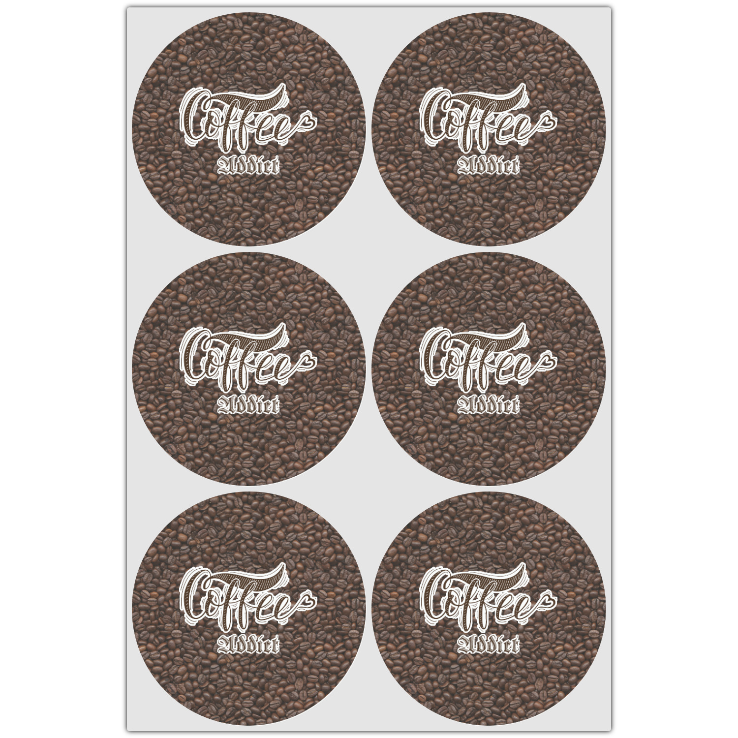 This design has a fun realistic picture of coffee beans for the background. On top of that is a fun quote saying that "everything gets better with coffee." The coordinating design has the words "coffee addict." There are also plenty of other coffee quotes to choose from in our design center.