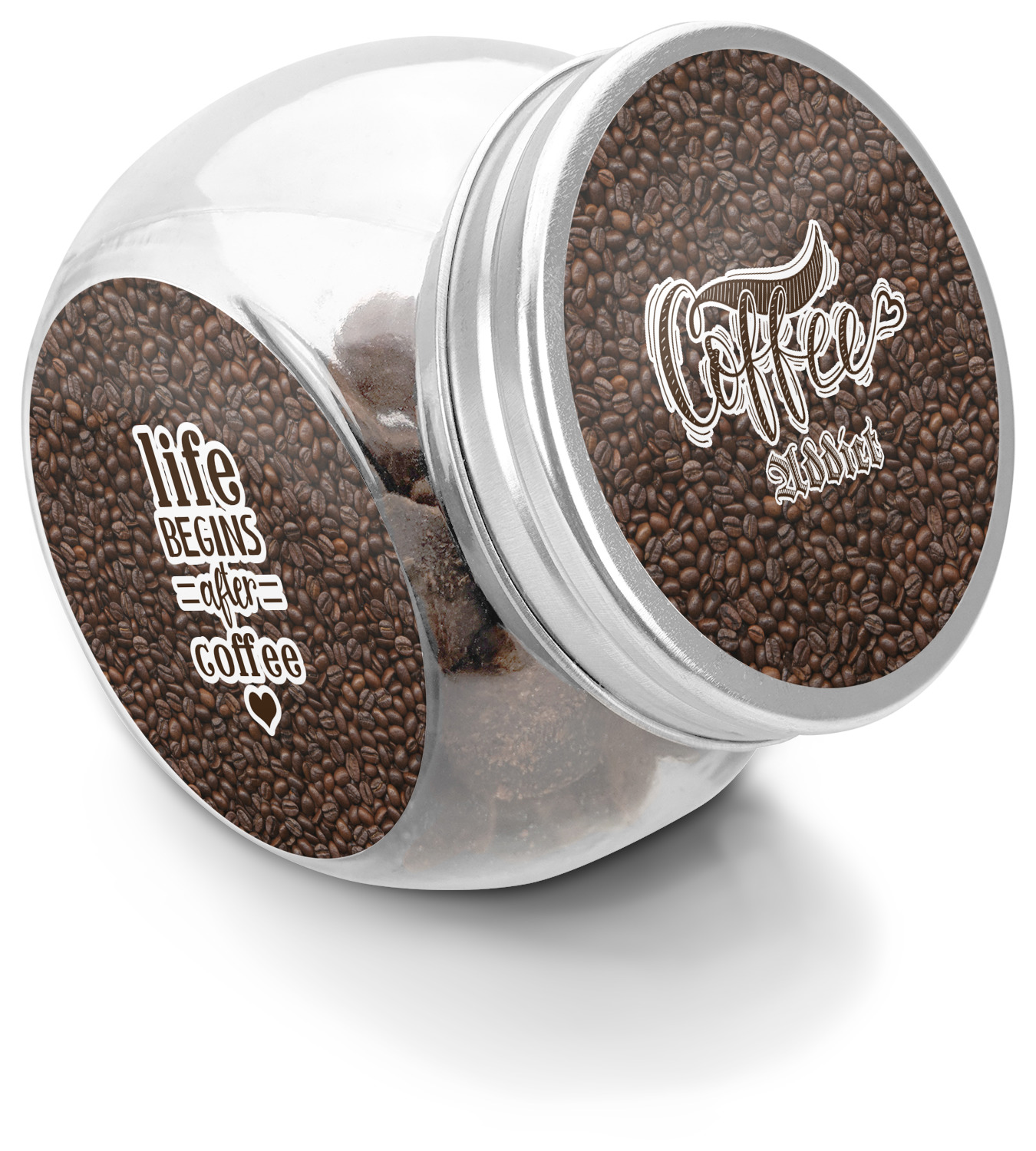 This treat jar is an excellent way to store treats for your favorite canine or feline. Moreover, their delicate, classy appearance makes them a tasteful addition to your countertop's décor. Crafted from clear glass, its unique construction and silver metal, screw-on lid allows for quick and easy access. Three, permanent, vinyl stickers are applied to both sides of the jar and lid, presenting your personalized design. The base of this glass, dog treat jar is 3.4" x 4.75", and the jar stands at 5" tall. Though on the smaller side, this jar is best suited for smaller treats or training treats.