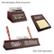 Crafted from a fine mahogany, this post it note holder is in the shade of a dark, cherry color. The dispenser itself is about 4.25 by 6.25 by 0.75 inches. You can place your 3 by 3 inch sticky notes in the indentation below the nameplate. We print your customization onto the nameplate that rests above the velvety indentation.