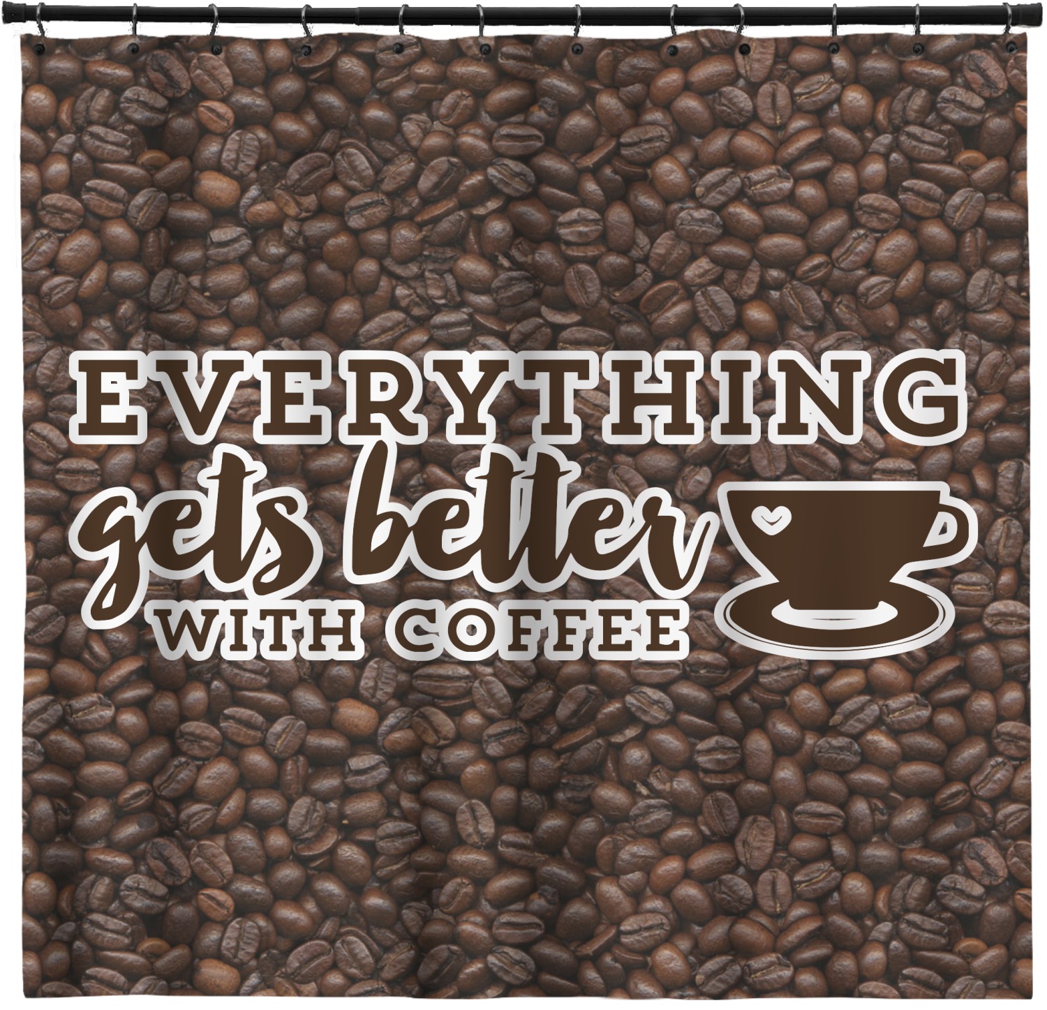 This design has a fun realistic picture of coffee beans for the background. On top of that is a fun quote saying that "everything gets better with coffee." The coordinating design has the words "coffee addict." There are also plenty of other coffee quotes to choose from in our design center.